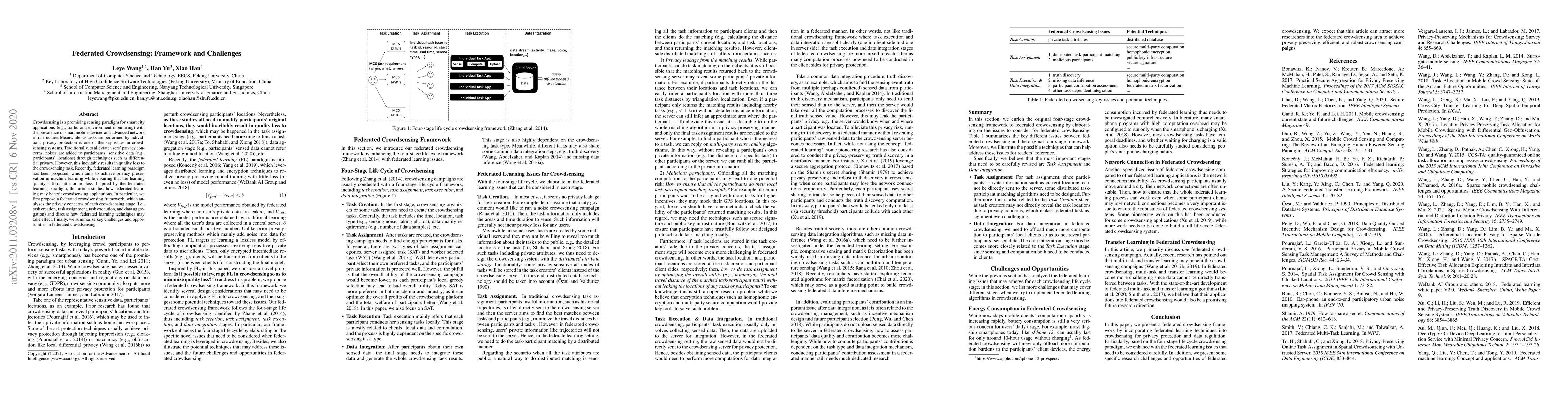 This paper proposes a federated crowdsensing framework leveraging federated learning to enhance privacy protection in crowdsensing applications while minimizing quality loss. It analyzes privacy concerns at each stage of crowdsensing and outlines key challenges and opportunities for future research.