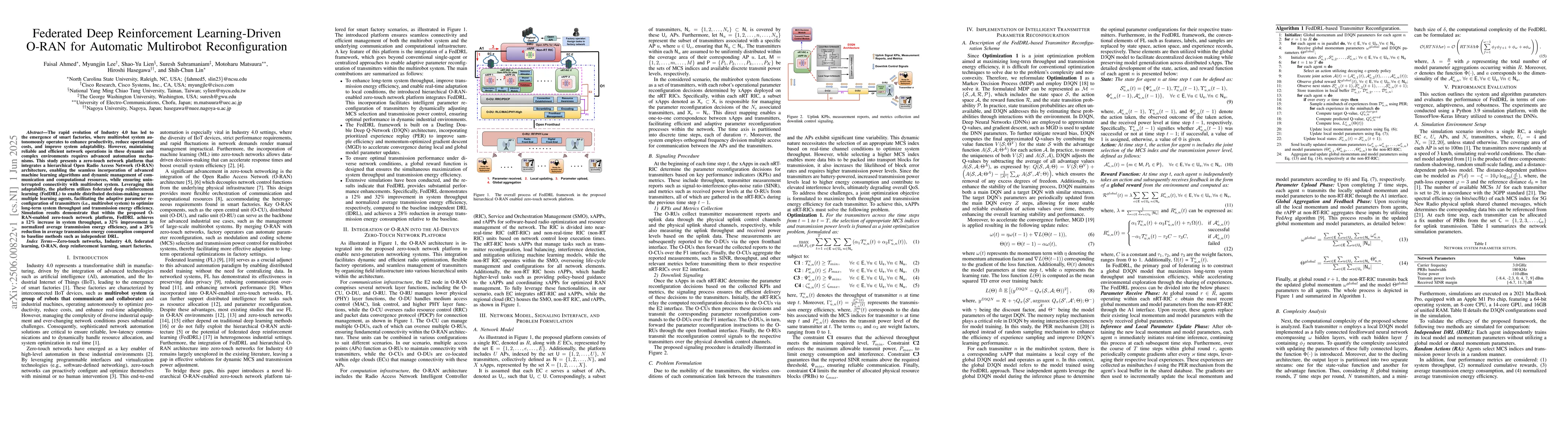 This study presents a zero-touch network platform using federated deep reinforcement learning to optimize multirobot system reconfiguration in Industry 4.0 smart factories, achieving significant improvements in throughput and energy efficiency.