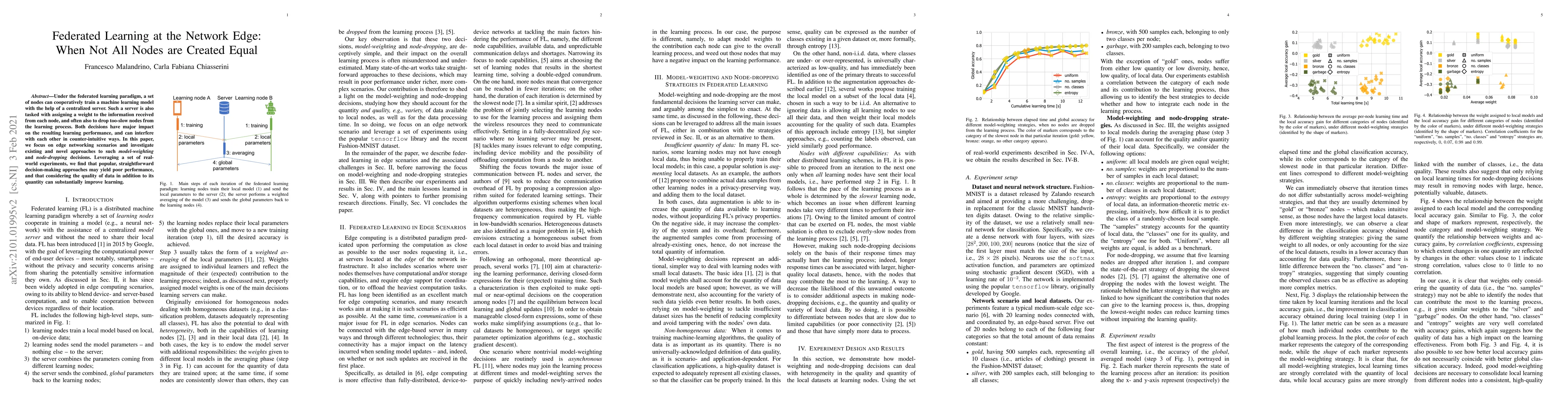 Under the federated learning paradigm, a set of nodes can cooperatively train a machine learning model with the help of a centralized server. Such a server is also tasked with assigning a weight to the information received from each node, and often also to drop too-slow nodes from the learning process. Both decisions have major impact on the resulting learning performance, and can interfere with each other in counterintuitive ways. In this paper, we focus on edge networking scenarios and investigate existing and novel approaches to such model-weighting and node-dropping decisions. Leveraging a set of real-world experiments, we find that popular, straightforward decision-making approaches may yield poor performance, and that considering the quality of data in addition to its quantity can substantially improve learning.