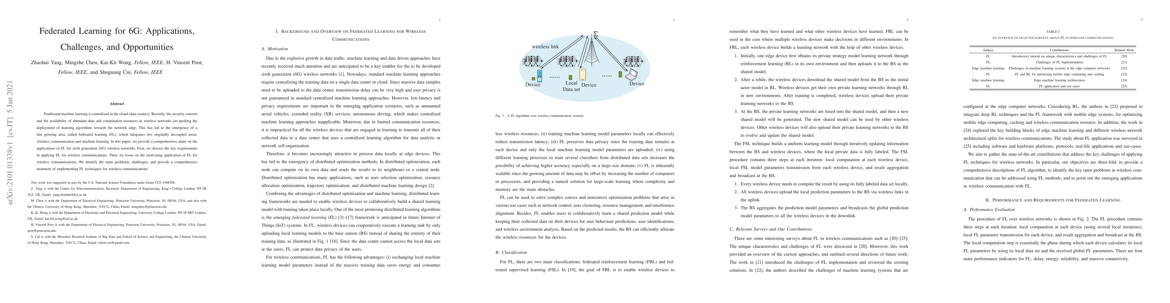 This paper explores federated learning (FL) applications in 6G wireless networks, addressing the integration of wireless communication and machine learning. It identifies key challenges and opportunities in deploying FL techniques to meet the requirements of 6G, while also highlighting potential benefits and areas for future research.