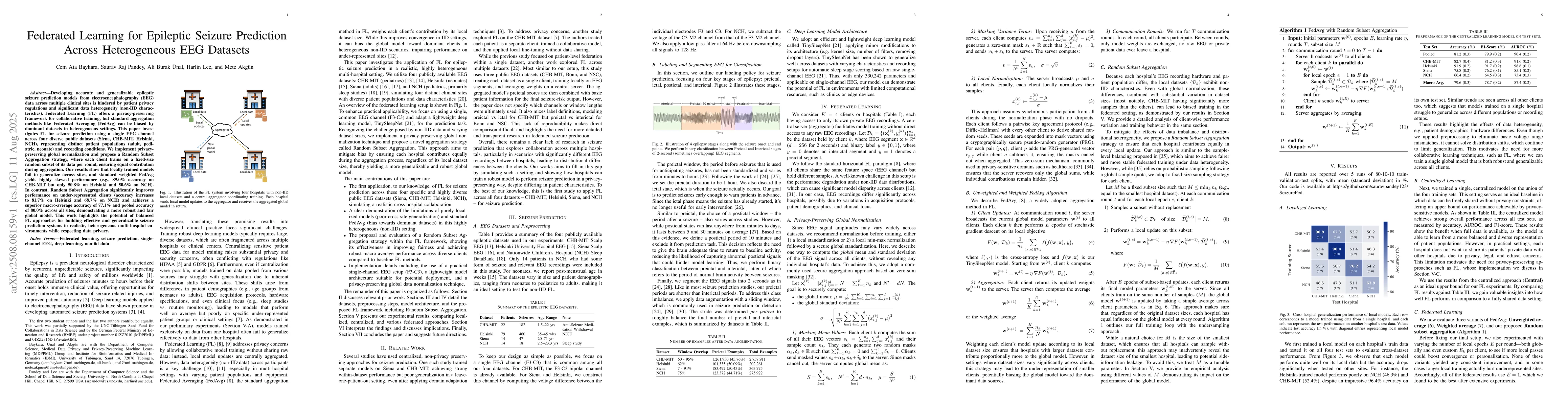 This research explores Federated Learning (FL) for epileptic seizure prediction using EEG data from diverse clinical sites, addressing privacy concerns and data heterogeneity. The study finds that standard FL methods like FedAvg favor dominant datasets, leading to biased models. A new Random Subset Aggregation strategy is proposed, ensuring equal contribution from all clients, resulting in improved performance across under-represented datasets and a more robust global model.