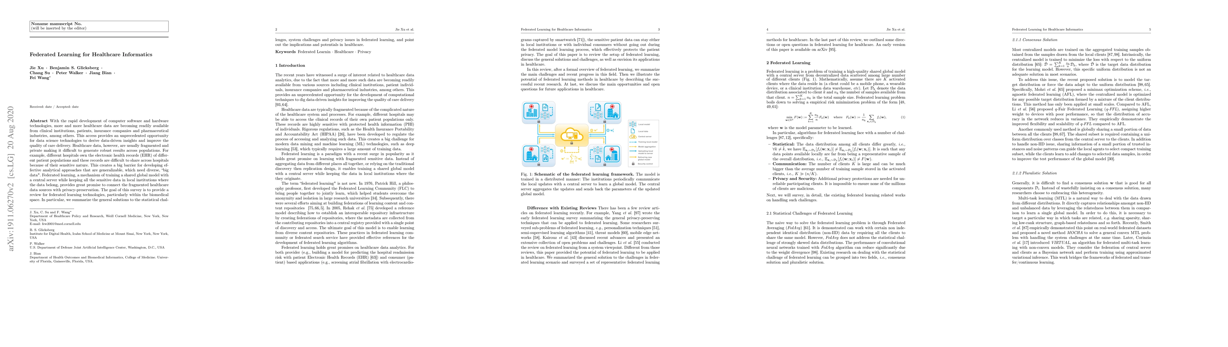This paper reviews federated learning technologies for healthcare, emphasizing their potential to integrate fragmented, sensitive data sources while preserving privacy. It discusses solutions to statistical, system, and privacy challenges, highlighting the method's promise for improving data-driven insights and care delivery in healthcare.
