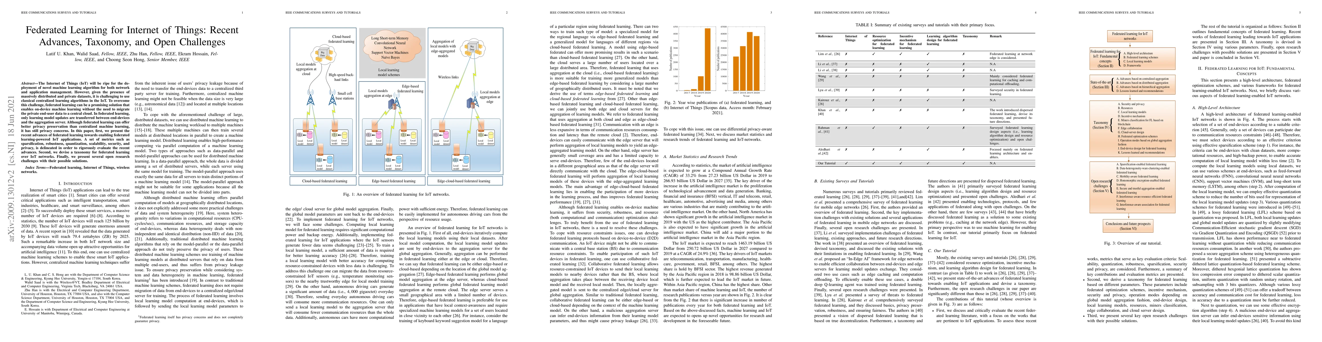 This paper reviews recent advances in federated learning for IoT, proposing a taxonomy and evaluating metrics like privacy and security. It also presents two use cases highlighting improved privacy and discusses open challenges and potential solutions.