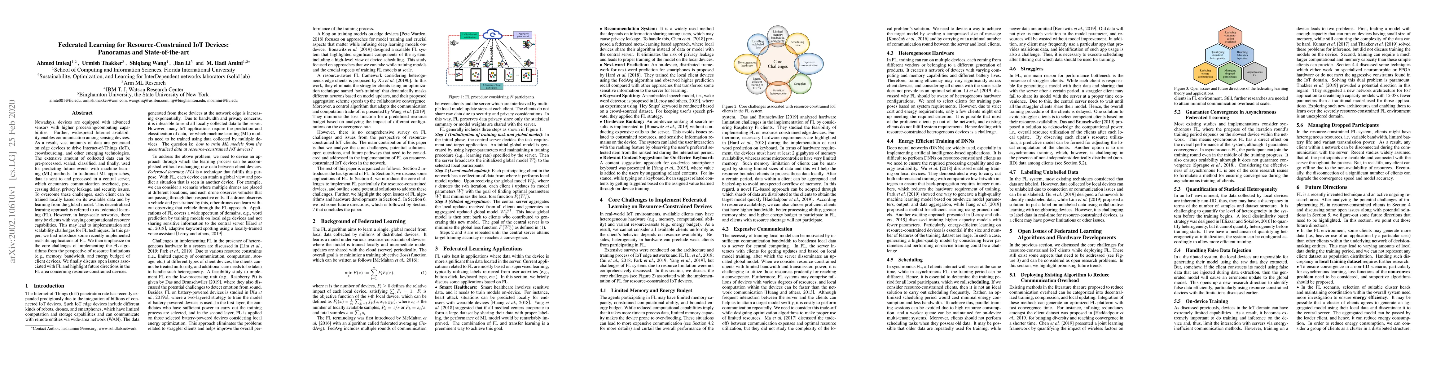 This paper reviews federated learning (FL) applications for Internet-of-Things (IoT) devices, focusing on challenges in resource-constrained environments. It discusses decentralized learning benefits and outlines key issues related to memory, bandwidth, and energy limitations for implementing FL in large-scale networks.