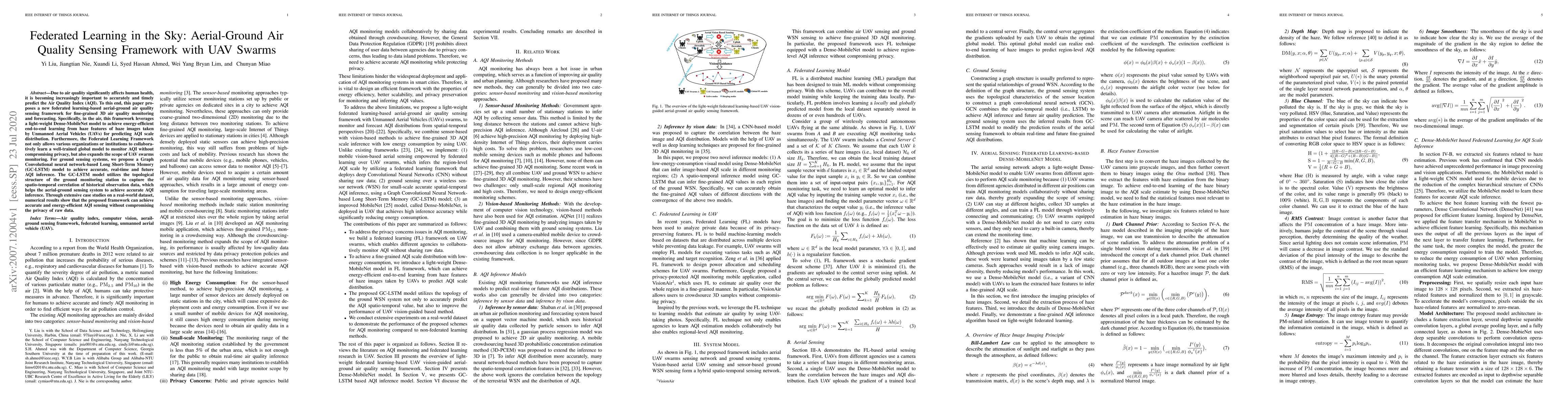 This paper proposes a federated learning-based aerial-ground framework for fine-grained 3D air quality monitoring using UAV swarms. It employs a Dense-MobileNet model for UAVs to predict AQI and a GC-LSTM model for ground stations to capture spatio-temporal correlations, ensuring accurate and private AQI inference.