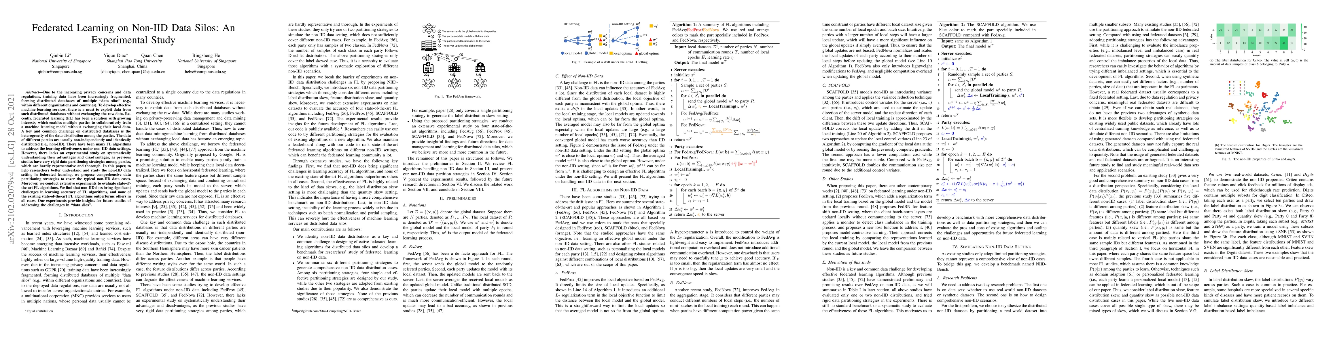 Due to the increasing privacy concerns and data regulations, training data have been increasingly fragmented, forming distributed databases of multiple "data silos" (e.g., within different organizations and countries). To develop effective machine learning services, there is a must to exploit data from such distributed databases without exchanging the raw data. Recently, federated learning (FL) has been a solution with growing interests, which enables multiple parties to collaboratively train a machine learning model without exchanging their local data. A key and common challenge on distributed databases is the heterogeneity of the data distribution among the parties. The data of different parties are usually non-independently and identically distributed (i.e., non-IID). There have been many FL algorithms to address the learning effectiveness under non-IID data settings. However, there lacks an experimental study on systematically understanding their advantages and disadvantages, as previous studies have very rigid data partitioning strategies among parties, which are hardly representative and thorough. In this paper, to help researchers better understand and study the non-IID data setting in federated learning, we propose comprehensive data partitioning strategies to cover the typical non-IID data cases. Moreover, we conduct extensive experiments to evaluate state-of-the-art FL algorithms. We find that non-IID does bring significant challenges in learning accuracy of FL algorithms, and none of the existing state-of-the-art FL algorithms outperforms others in all cases. Our experiments provide insights for future studies of addressing the challenges in "data silos".