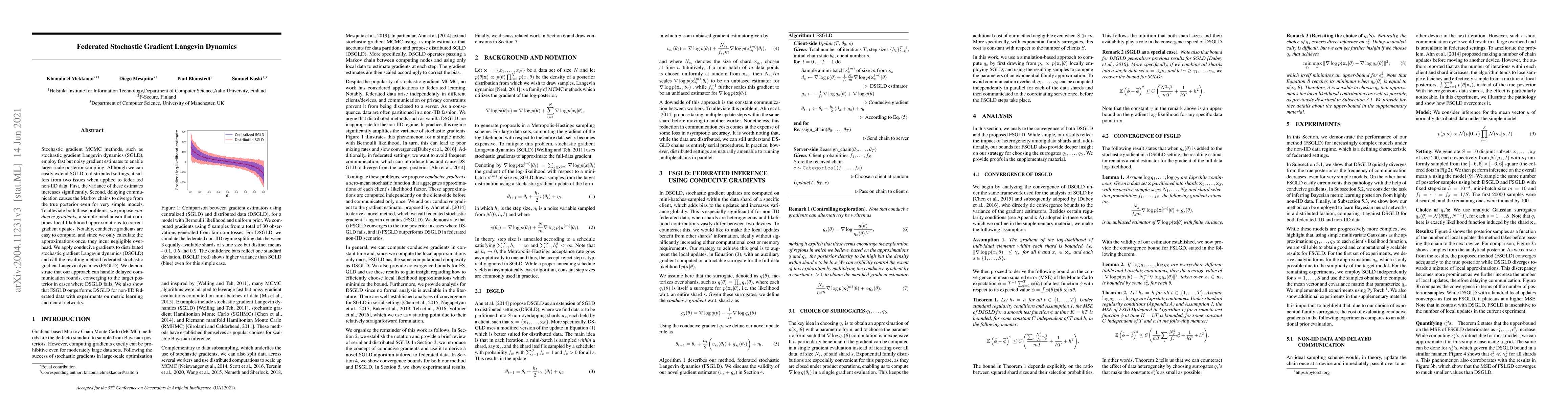 The paper proposes federated stochastic gradient Langevin dynamics (FSGLD) to address the challenges of variance increase and divergence in distributed stochastic gradient Langevin dynamics (DSGLD) for non-IID federated data. It introduces conducive gradients to correct local gradient updates, achieving convergence without significant overhead.