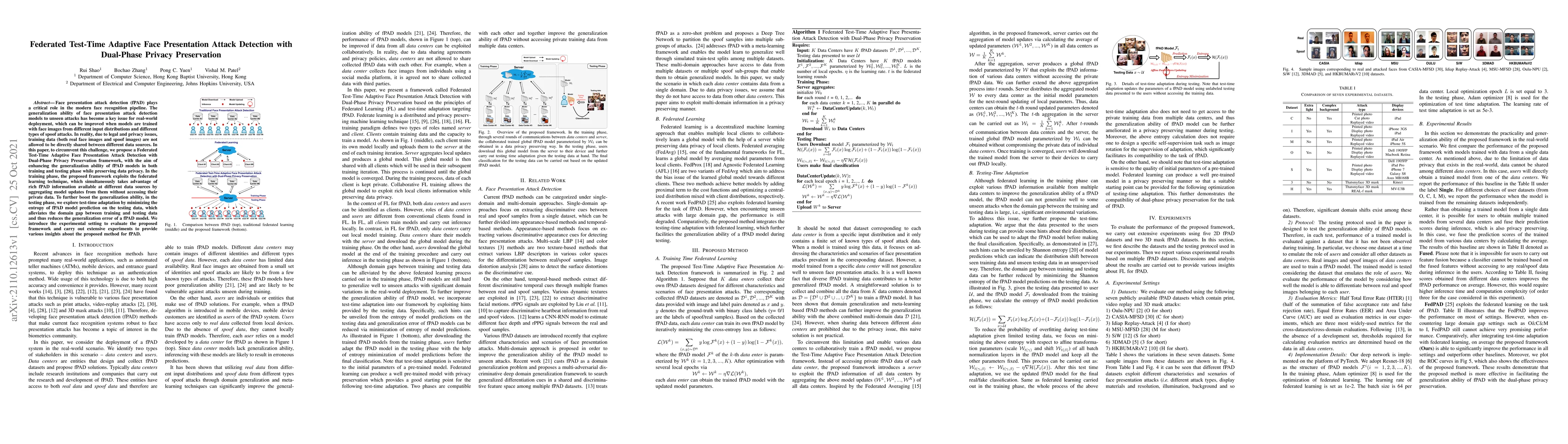 This paper proposes a Federated Test-Time Adaptive Face Presentation Attack Detection framework that leverages federated learning to enhance model generalization without sharing private data. It further employs test-time adaptation to minimize prediction entropy, reducing domain gaps and improving detection accuracy.