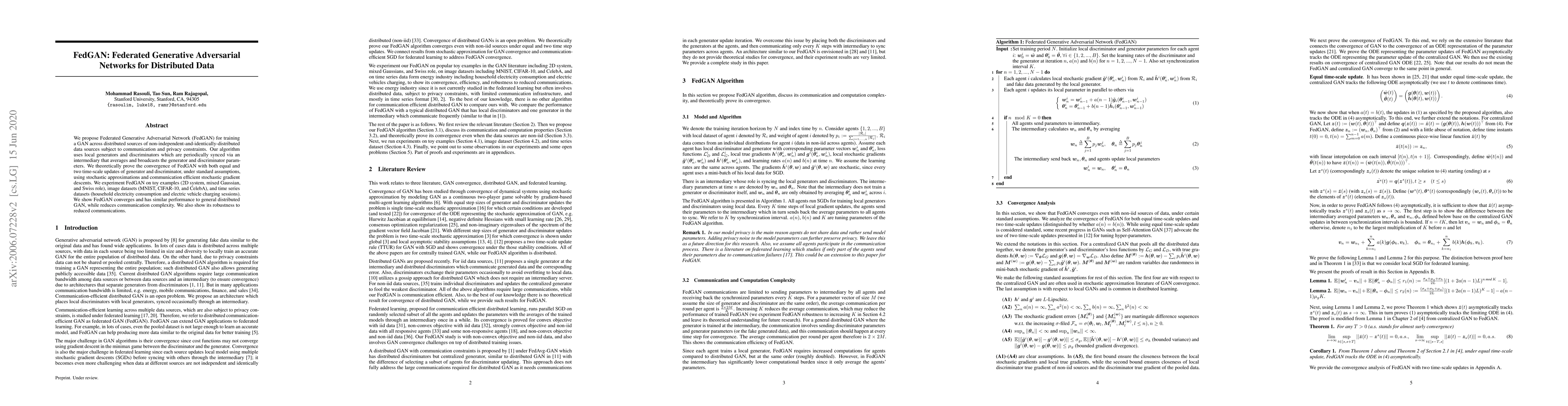 Researchers developed FedGAN to train Generative Adversarial Networks on distributed data sources under privacy constraints, achieving convergence and comparable performance with reduced communication complexity.