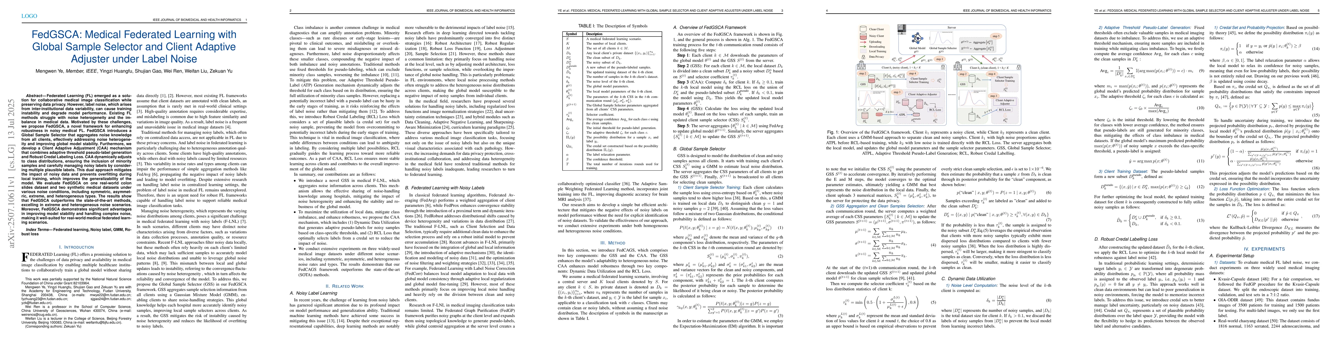 Federated Learning (FL) emerged as a solution for collaborative medical image classification while preserving data privacy. However, label noise, which arises from inter-institutional data variability, can cause training instability and degrade model performance. Existing FL methods struggle with noise heterogeneity and the imbalance in medical data. Motivated by these challenges, we propose FedGSCA, a novel framework for enhancing robustness in noisy medical FL. FedGSCA introduces a Global Sample Selector that aggregates noise knowledge from all clients, effectively addressing noise heterogeneity and improving global model stability. Furthermore, we develop a Client Adaptive Adjustment (CAA) mechanism that combines adaptive threshold pseudo-label generation and Robust Credal Labeling Loss. CAA dynamically adjusts to class distributions, ensuring the inclusion of minority samples and carefully managing noisy labels by considering multiple plausible labels. This dual approach mitigates the impact of noisy data and prevents overfitting during local training, which improves the generalizability of the model. We evaluate FedGSCA on one real-world colon slides dataset and two synthetic medical datasets under various noise conditions, including symmetric, asymmetric, extreme, and heterogeneous types. The results show that FedGSCA outperforms the state-of-the-art methods, excelling in extreme and heterogeneous noise scenarios. Moreover, FedGSCA demonstrates significant advantages in improving model stability and handling complex noise, making it well-suited for real-world medical federated learning scenarios.