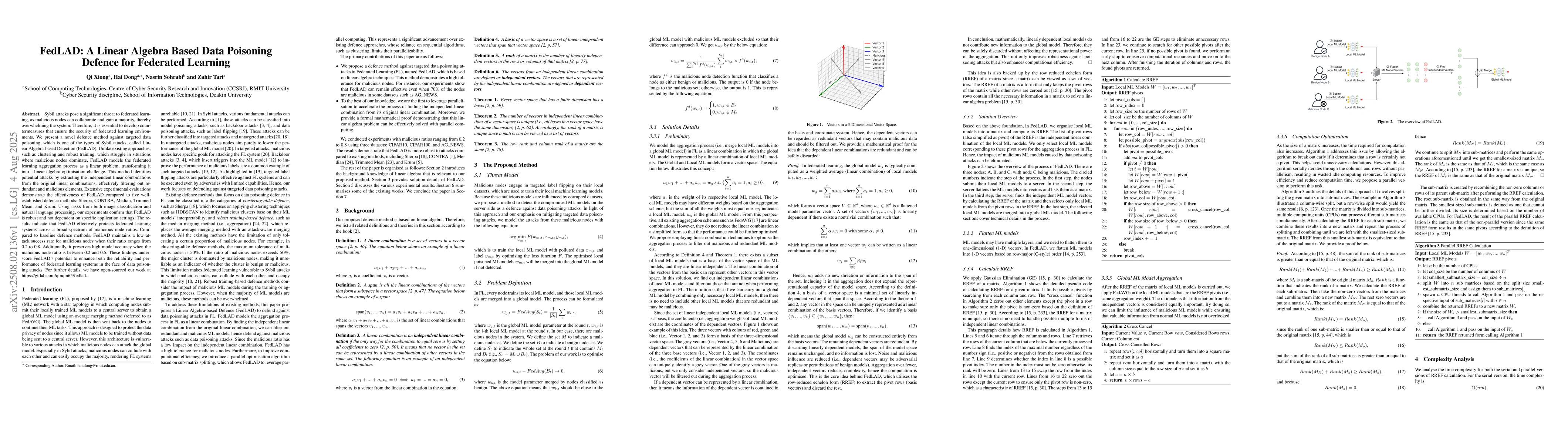 Sybil attacks pose a significant threat to federated learning, as malicious nodes can collaborate and gain a majority, thereby overwhelming the system. Therefore, it is essential to develop countermeasures that ensure the security of federated learning environments. We present a novel defence method against targeted data poisoning, which is one of the types of Sybil attacks, called Linear Algebra-based Detection (FedLAD). Unlike existing approaches, such as clustering and robust training, which struggle in situations where malicious nodes dominate, FedLAD models the federated learning aggregation process as a linear problem, transforming it into a linear algebra optimisation challenge. This method identifies potential attacks by extracting the independent linear combinations from the original linear combinations, effectively filtering out redundant and malicious elements. Extensive experimental evaluations demonstrate the effectiveness of FedLAD compared to five well-established defence methods: Sherpa, CONTRA, Median, Trimmed Mean, and Krum. Using tasks from both image classification and natural language processing, our experiments confirm that FedLAD is robust and not dependent on specific application settings. The results indicate that FedLAD effectively protects federated learning systems across a broad spectrum of malicious node ratios. Compared to baseline defence methods, FedLAD maintains a low attack success rate for malicious nodes when their ratio ranges from 0.2 to 0.8. Additionally, it preserves high model accuracy when the malicious node ratio is between 0.2 and 0.5. These findings underscore FedLAD's potential to enhance both the reliability and performance of federated learning systems in the face of data poisoning attacks.