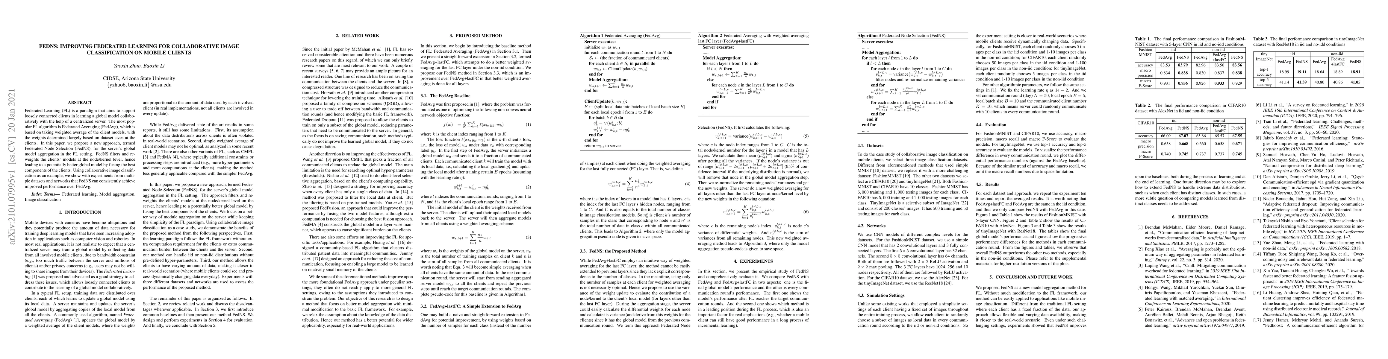 The paper proposes Federated Node Selection (FedNS), a new approach for improving Federated Learning's global model aggregation by filtering and re-weighting client models at the node/kernel level. Experiments demonstrate that FedNS outperforms the standard Federated Averaging (FedAvg) method in collaborative image classification tasks.