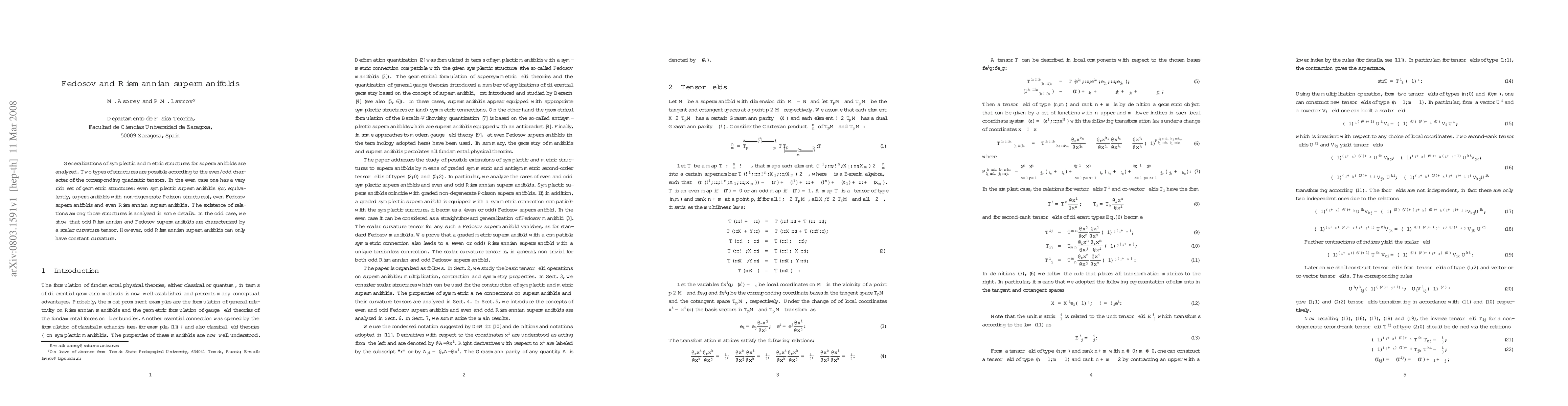 The paper examines generalizations of symplectic and metric structures on supermanifolds, distinguishing between even and odd cases. Even supermanifolds feature rich geometric structures including symplectic, Fedosov, and Riemannian types, while odd supermanifolds are characterized by a scalar curvature tensor with constant curvature.
