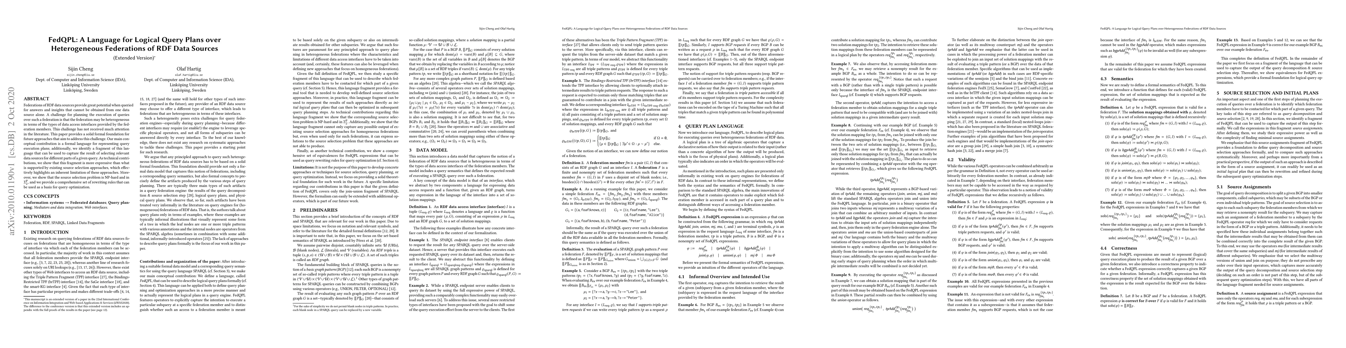 This paper introduces FedQPL, a language for representing query execution plans over heterogeneous RDF data source federations. It identifies the limitations of existing approaches to source selection and provides a comprehensive set of rewriting rules for query optimization.