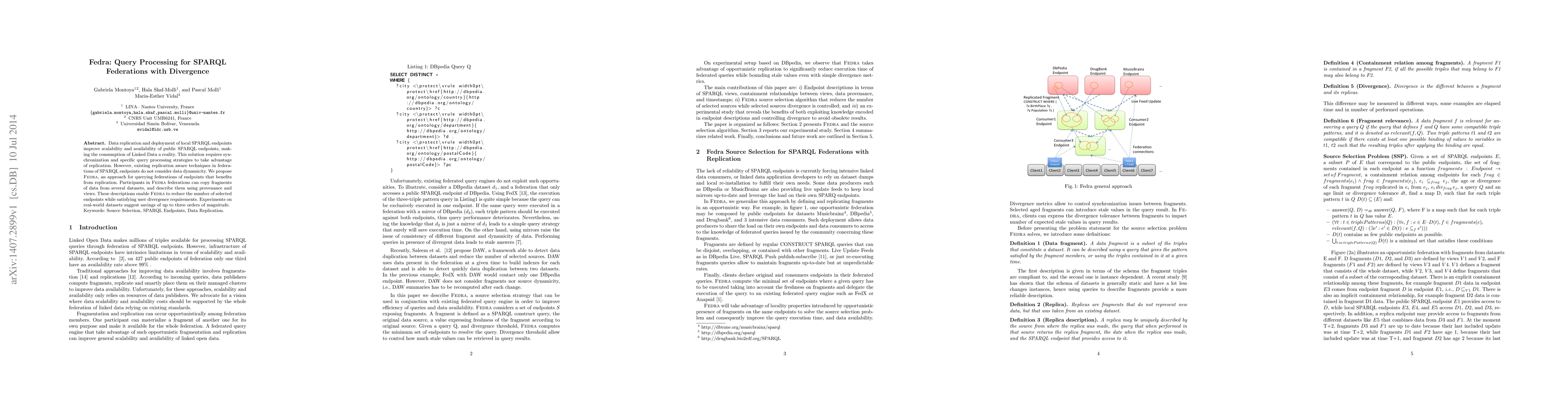Fedra is a novel approach for query processing in federated SPARQL endpoints, leveraging data replication to enhance query performance and reduce endpoint selection, even with dynamic data divergence. Experiments show significant efficiency gains, up to three orders of magnitude, by utilizing data provenance and views.