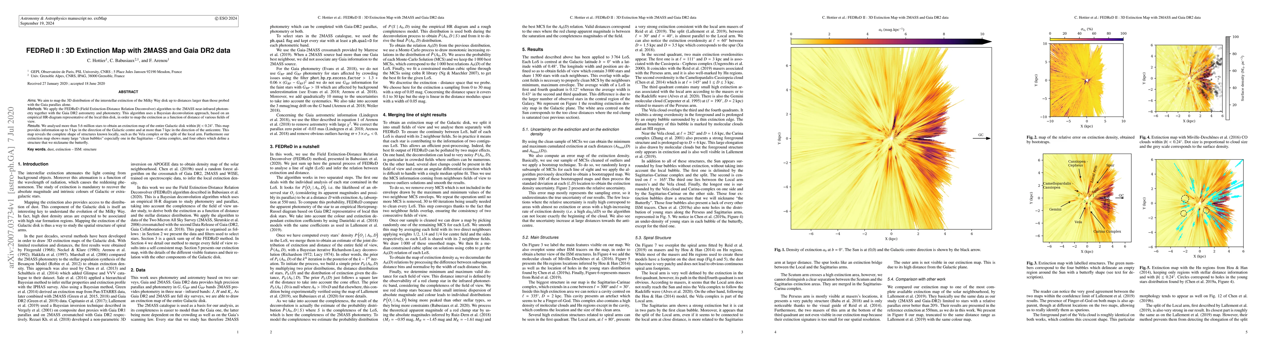 This paper presents a 3D extinction map of the Milky Way disk using the FEDReD II algorithm applied to 2MASS and Gaia DR2 data, revealing the interstellar extinction up to 5 kpc towards the Galactic centre and 7 kpc towards the anticentre. The map highlights known structures and identifies large "clean bubbles" and a new "butterfly" structure.