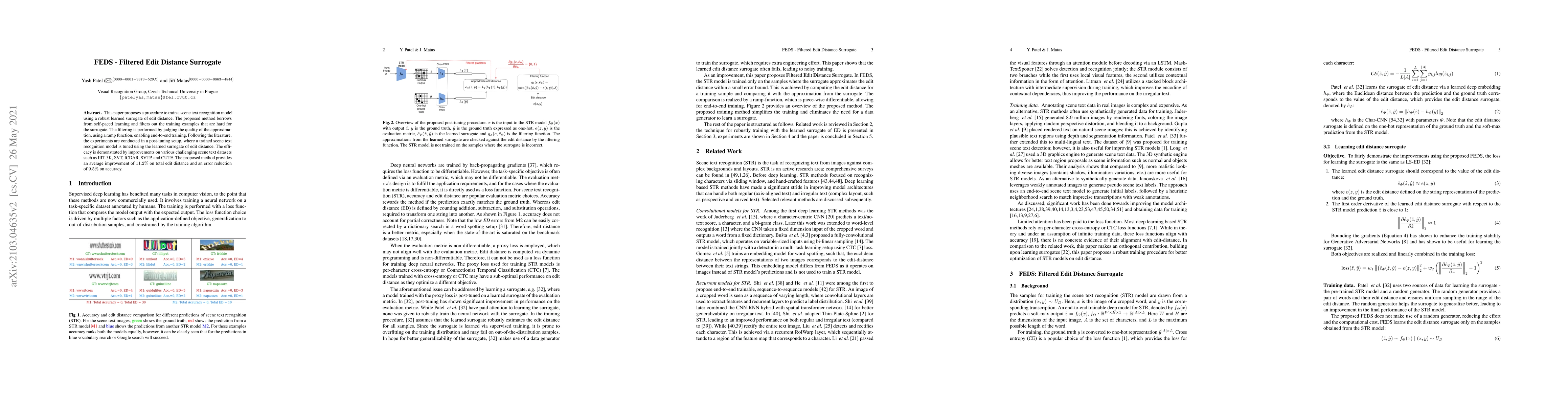 This paper introduces FEDS, a method that trains a scene text recognition model using a robust learned surrogate of edit distance, employing self-paced learning and filtering difficult training examples to enhance performance. Experiments show an average $11.2\%$ improvement in edit distance and a $9.5\%$ reduction in error on several datasets.