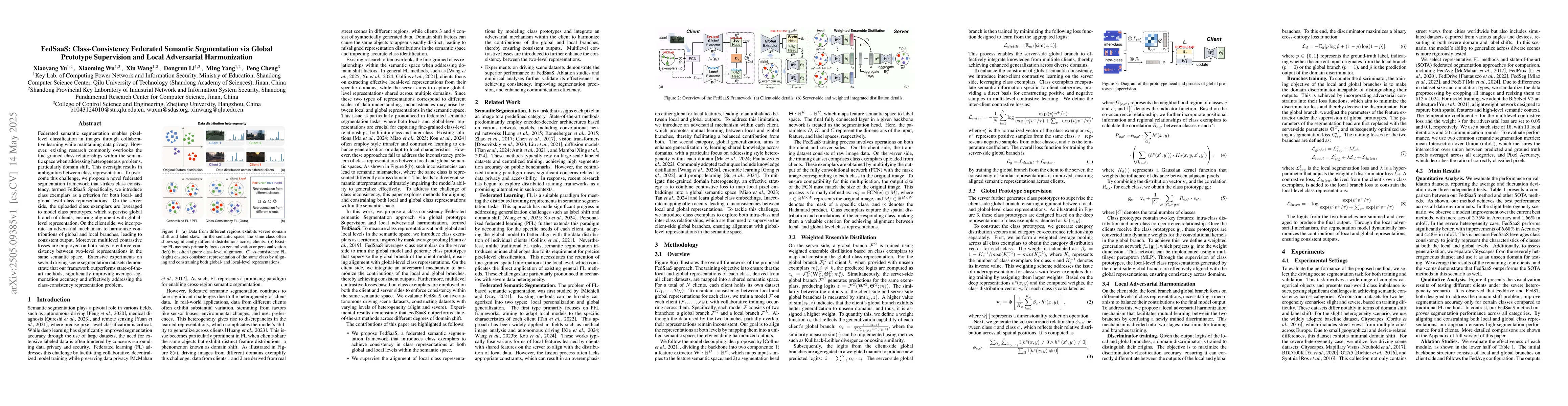 FedSaaS distinguishes itself by focusing on class consistency through global prototype supervision and local adversarial harmonization, addressing a critical gap in existing federated semantic segmentation research.