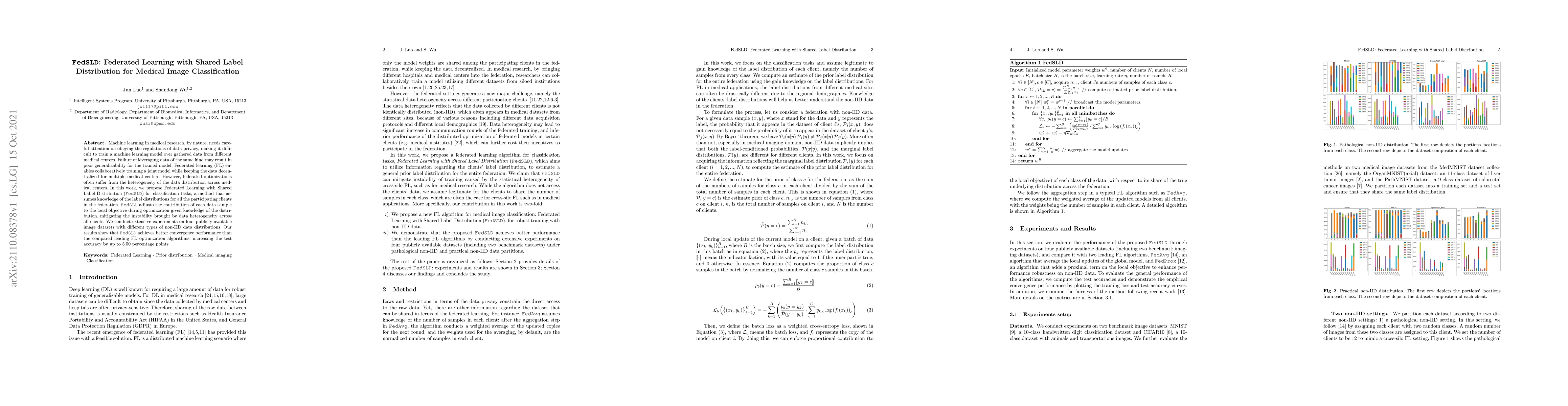 This paper proposes Federated Learning with Shared Label Distribution (FedSLD) to address data heterogeneity in federated learning for medical image classification. FedSLD leverages knowledge of label distributions across medical centers to adjust sample contributions, improving convergence and accuracy compared to leading federated learning methods.