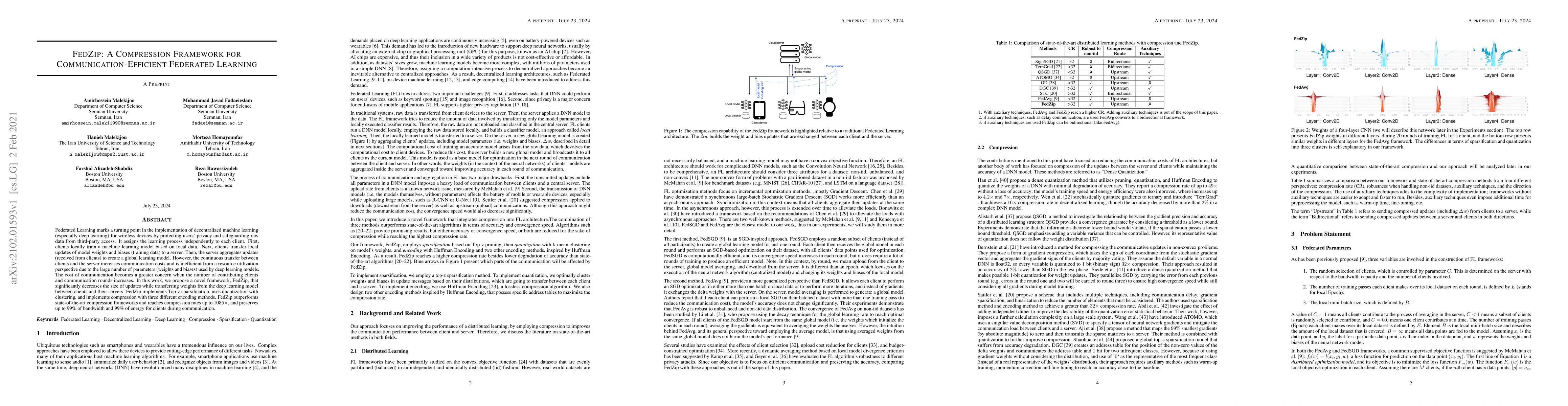 FedZip is a novel compression framework designed to reduce communication costs in federated learning by minimizing the size of model updates transferred between clients and servers. It achieves up to 1085x compression rates using sparsification, quantization, and advanced encoding methods, significantly reducing bandwidth and energy usage.