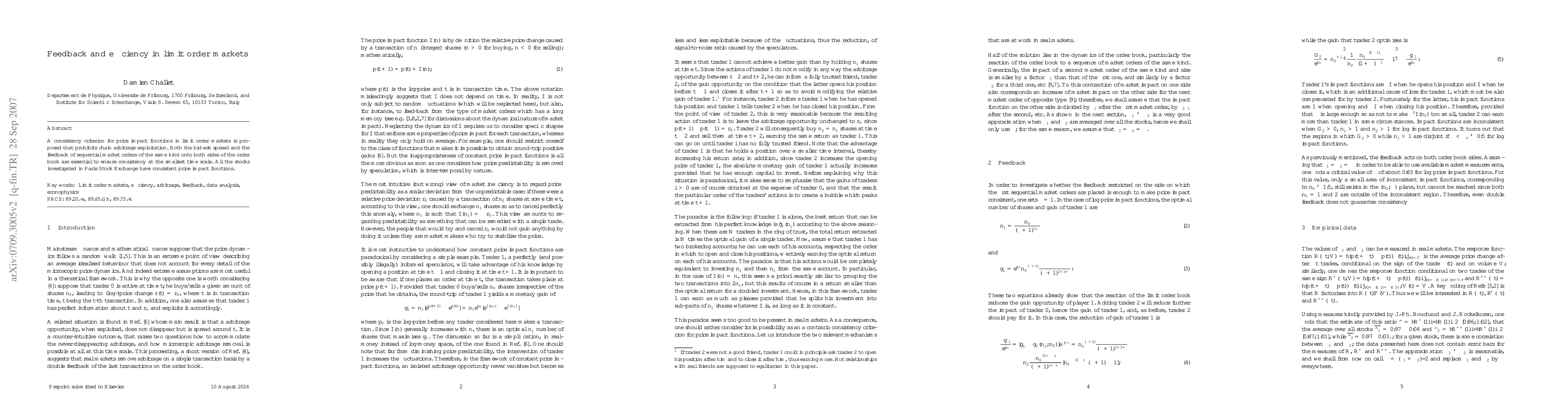 A consistency criterion for price impact functions in limit order markets is proposed that prohibits chain arbitrage exploitation. Both the bid-ask spread and the feedback of sequential market orders of the same kind onto both sides of the order book are essential to ensure consistency at the smallest time scale. All the stocks investigated in Paris Stock Exchange have consistent price impact functions.
