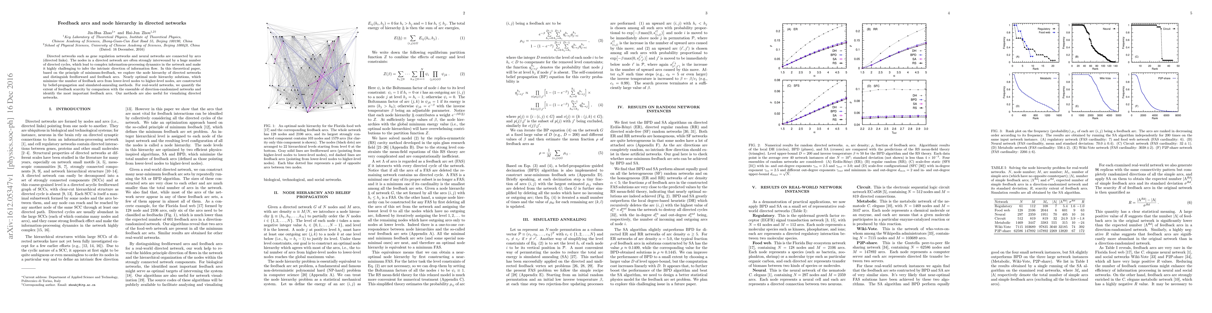 This paper investigates the hierarchy and feedback arcs in directed networks, employing minimum-feedback principles to construct nearly optimal node hierarchies. It uses belief-propagation and simulated-annealing to minimize feedback arcs and identifies significant feedback arcs in real-world networks by comparing them to randomized ensembles.
