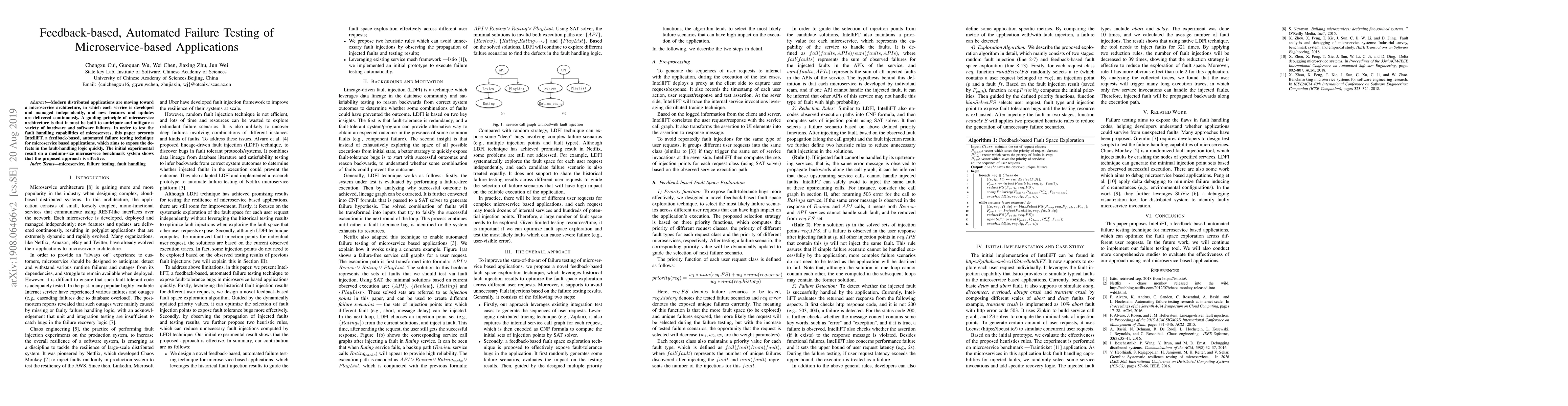Modern distributed applications are moving toward a microservice architecture, in which each service is developed and managed independently, and new features and updates are delivered continuously. A guiding principle of microservice architecture is that it must be built to anticipate and mitigate a variety of hardware and software failures. In order to test the fault handling capabilities of microservces, this paper presents IntelliFT, a feedback-based, automated failure testing technique for microservice based applications, which aims to expose the defects in the fault-handling logic quickly. The initial experimental result on a medium-size microservice benchmark system shows that the proposed approach is effective.