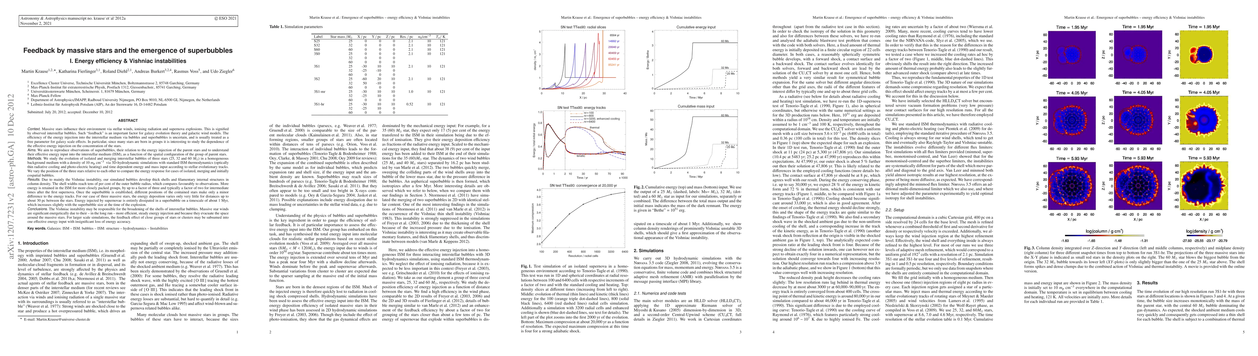 We study the evolution of isolated and merging interstellar bubbles of three stars (25, 32 and 60 M\odot) in a homogeneous background medium with a density of 10 mp /ccm via 3D-hydrodynamic simulations with standard ISM thermodynamics (optically thin radiative cooling and photo-electric heating) and time dependent energy and mass input according to stellar evolutionary tracks. We vary the position of the three stars relative to each other to compare the energy response for cases of isolated, merging and initially cospatial bubbles. Due to mainly the Vishniac instability, our simulated bubbles develop thick shells and filamentary internal structures in column density. The shell widths reach tens of per cent of the outer bubble radius, which compares favourably to observations. More energy is retained in the ISM for more closely packed groups, by up to a factor of three and typically a factor of two for intermediate times after the first supernova. Once the superbubble is established, different positions of the contained stars make only a minor difference to the energy tracks. For our case of three massive stars, the energy deposition varies only very little for distances up to about 30 pc between the stars. Energy injected by supernovae is entirely dissipated in a superbubble on a timescale of about 1 Myr, which increases slightly with the superbubble size at the time of the explosion. The Vishniac instability may be responsible for the broadening of the shells of interstellar bubbles. Massive star winds are significant energetically due to their - in the long run - more efficient, steady energy injection and because they evacuate the space around the massive stars. For larger scale simulations, the feedback effect of close groups of stars or clusters may be subsumed into one effective energy input with insignificant loss of energy accuracy.