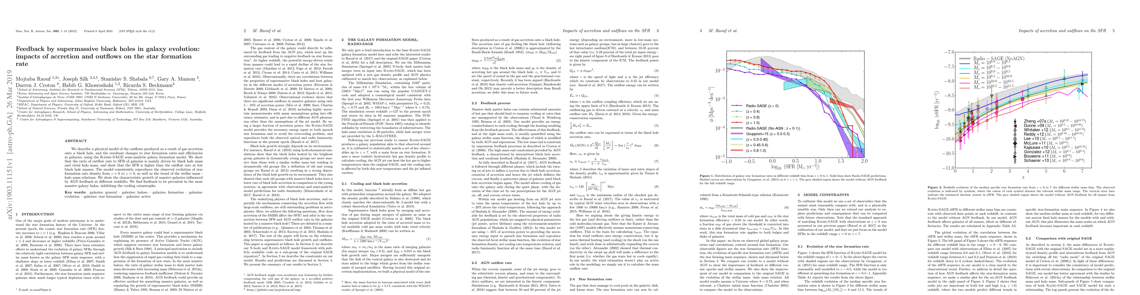 This paper models the impact of supermassive black hole accretion and outflows on galaxy star formation rates using the Radio-SAGE semi-analytic model, showing that black hole and halo mass primarily determine the outflow rate relative to star formation, with feedback significantly influencing massive galaxy growth and inhibiting cooling catastrophe.