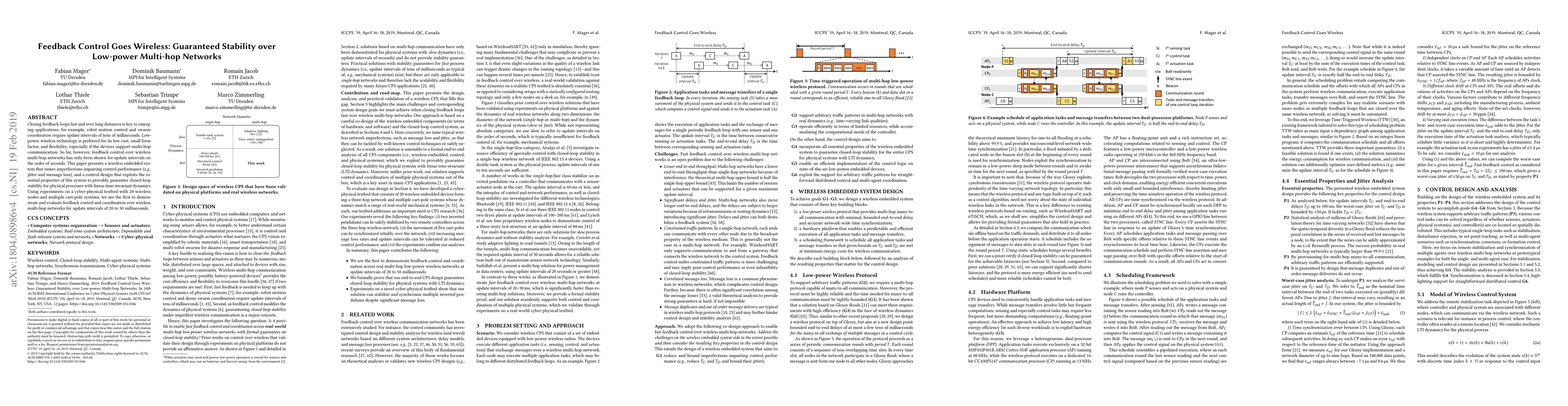 This paper introduces a wireless embedded system and control design to ensure stability in feedback loops over low-power multi-hop networks, addressing issues like jitter and message loss. Experimental results demonstrate the first successful implementation of such control over wireless networks with update intervals of 20 to 50 milliseconds.