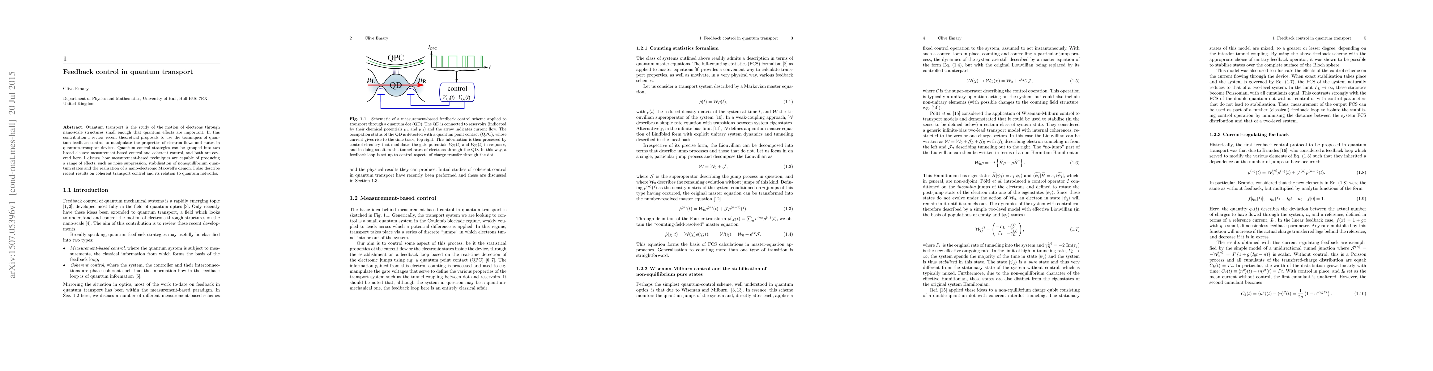 Quantum transport is the study of the motion of electrons through nano-scale structures small enough that quantum effects are important. In this contribution I review recent theoretical proposals to use the techniques of quantum feedback control to manipulate the properties of electron flows and states in quantum-transport devices. Quantum control strategies can be grouped into two broad classes: measurement-based control and coherent control, and both are covered here. I discuss how measurement-based techniques are capable of producing a range of effects, such as noise suppression, stabilisation of nonequillibrium quantum states and the realisation of a nano-electronic Maxwell's demon. I also describe recent results on coherent transport control and its relation to quantum networks.