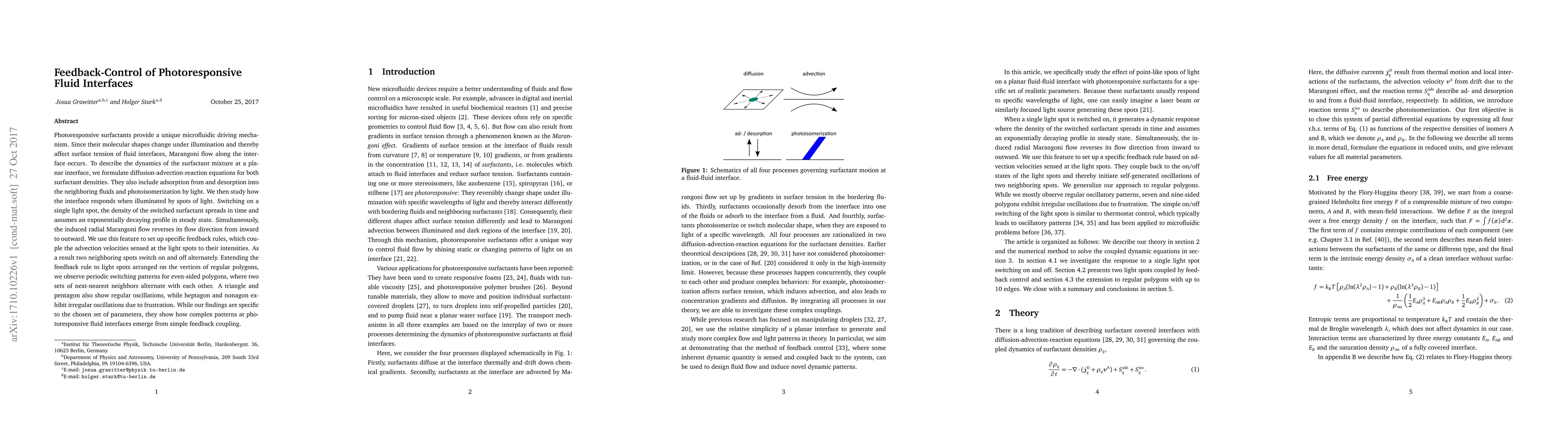Researchers discovered that photoresponsive surfactants can create complex patterns on fluid interfaces through simple feedback coupling, leading to periodic oscillations in light spot switching.