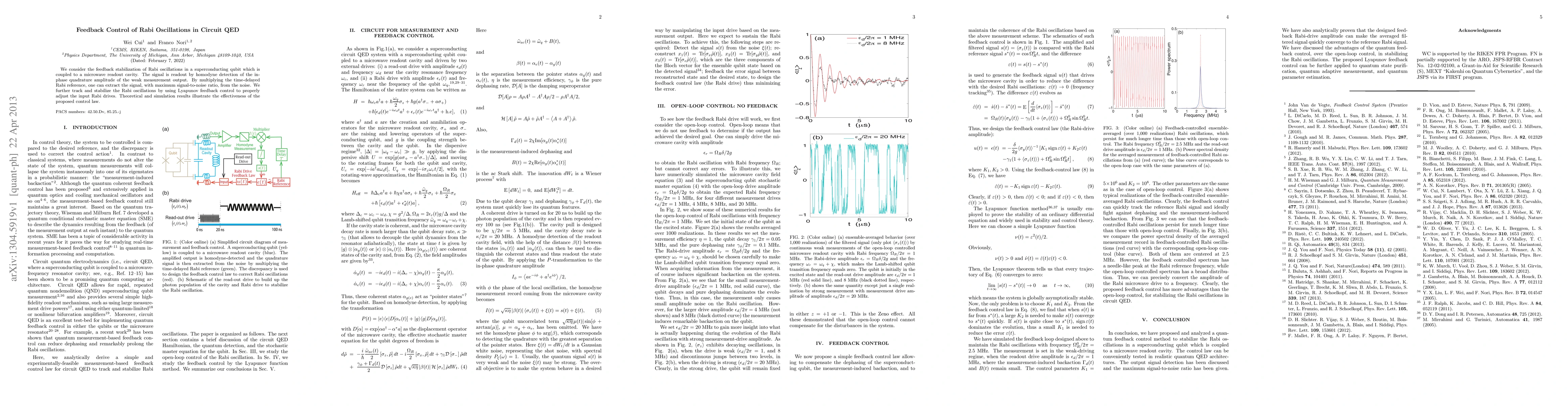 This paper proposes a feedback control method to stabilize Rabi oscillations in a superconducting qubit coupled to a microwave cavity, utilizing homodyne detection and Lyapunov feedback to enhance signal-to-noise ratio and maintain oscillation stability, validated by theoretical and simulation results.