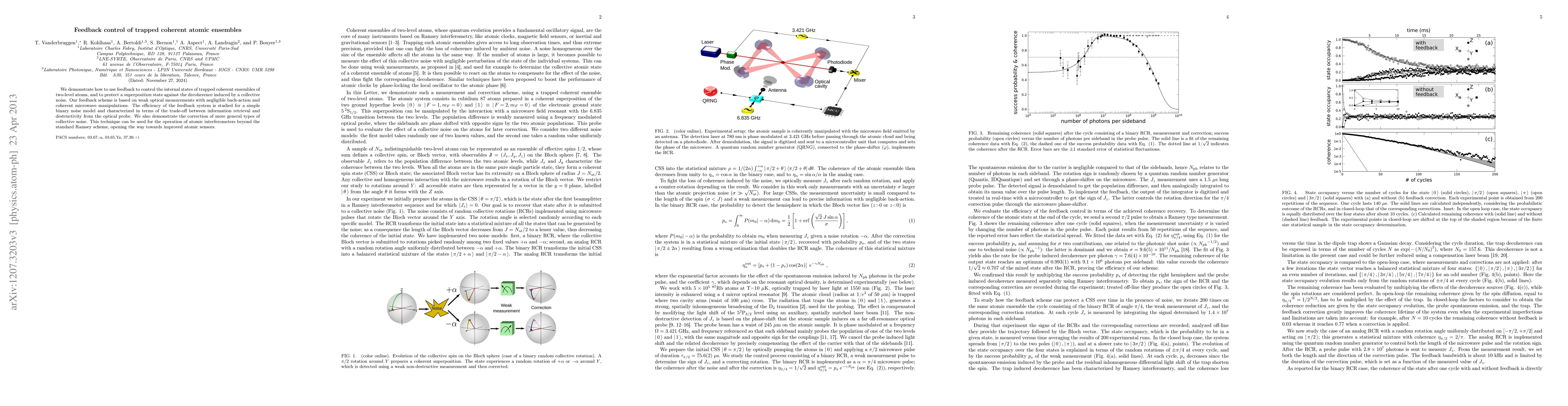 This paper presents a feedback control method to manage the internal states of trapped coherent atomic ensembles, protecting superposition states from decoherence via collective noise. The technique employs weak optical measurements and coherent microwave manipulations, demonstrating its efficiency and application in correcting various types of collective noise, which could enhance atomic interferometers and sensors.