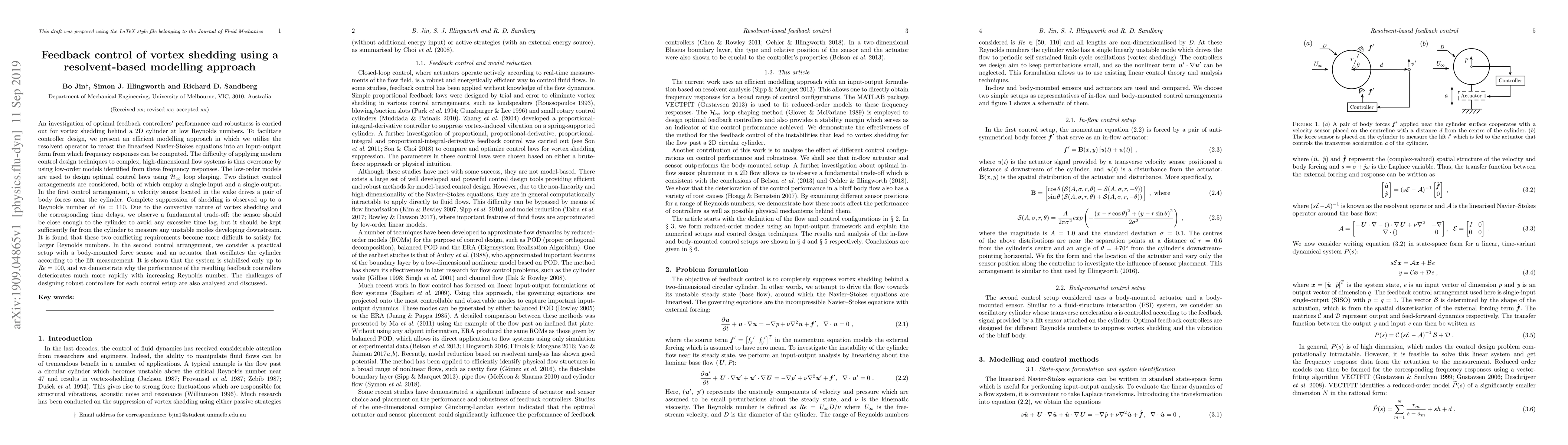 This paper investigates optimal feedback controllers for suppressing vortex shedding behind a 2D cylinder using a resolvent-based modelling approach. The study designs low-order models from frequency responses to facilitate control law design, achieving complete suppression up to $Re=110$ in one setup and $Re=100$ in another, highlighting the trade-offs in sensor placement and actuator design.
