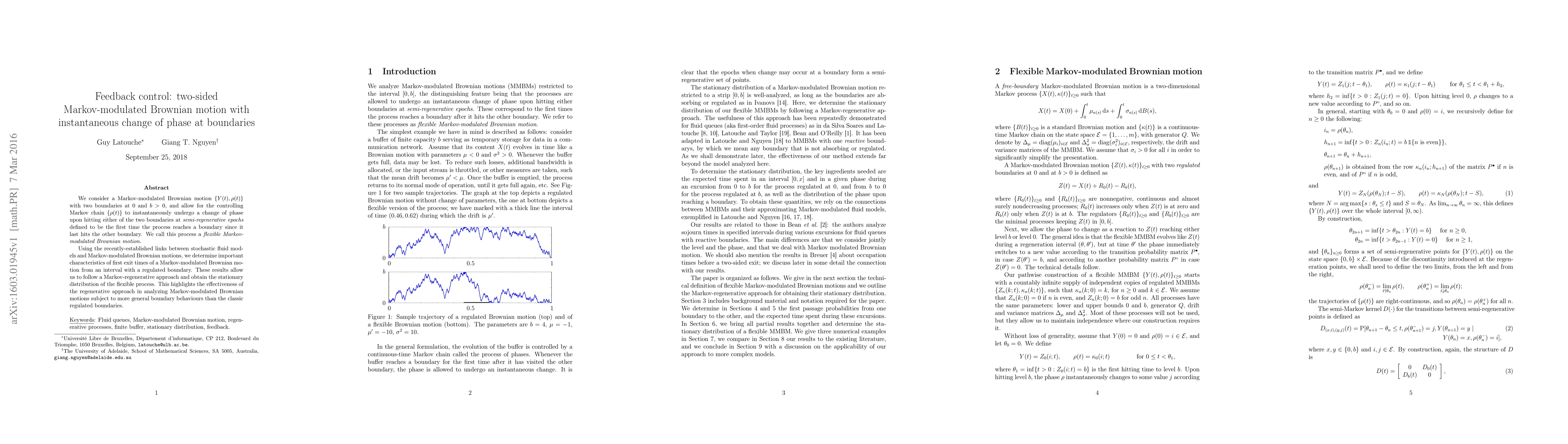 This paper studies a flexible Markov-modulated Brownian motion with instantaneous phase changes in the controlling Markov chain upon boundary hits, and uses regenerative techniques to determine the first exit times and stationary distribution, highlighting the method's effectiveness for more complex boundary behaviors.