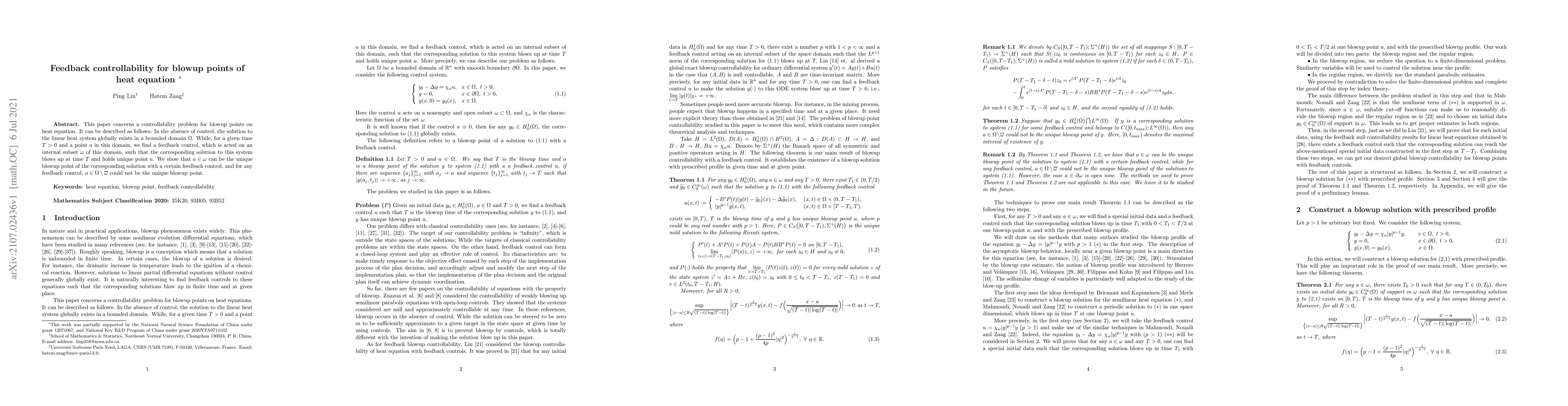 This paper concerns a controllability problem for blowup points on heat equation. It can be described as follows: In the absence of control, the solution to the linear heat system globally exists in a bounded domain $\Omega$. While, for a given time $T>0$ and a point $a$ in this domain, we find a feedback control, which is acted on an internal subset $\omega$ of this domain, such that the corresponding solution to this system blows up at time $T$ and holds unique point $a$. We show that $a\in \omega$ can be the unique blowup point of the corresponding solution with a certain feedback control, and for any feedback control, $a\in \Omega\setminus \overline{\omega}$ could not be the unique blowup point.
