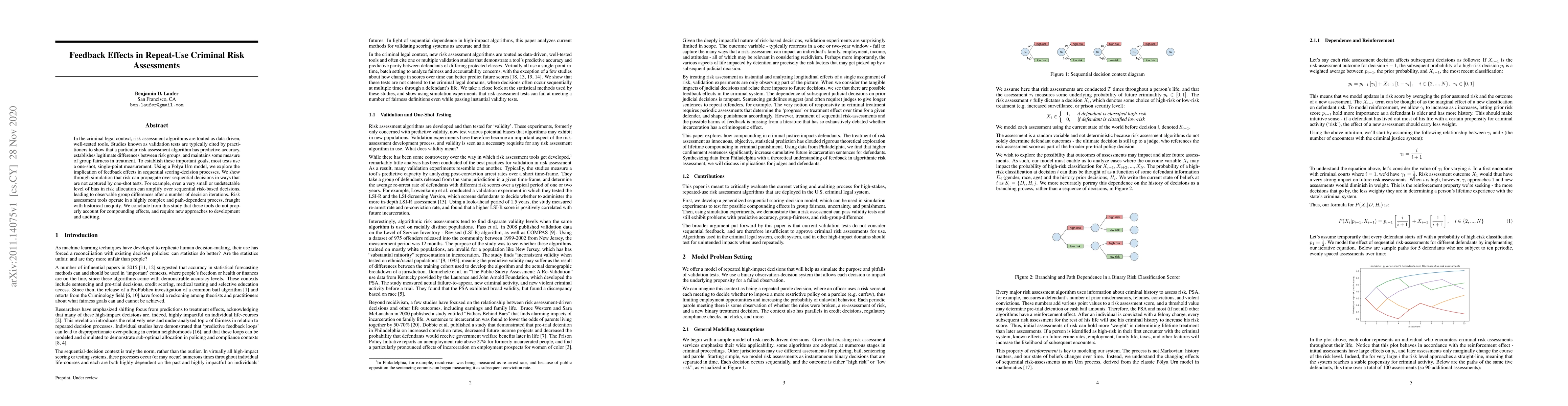 In the criminal legal context, risk assessment algorithms are touted as data-driven, well-tested tools. Studies known as validation tests are typically cited by practitioners to show that a particular risk assessment algorithm has predictive accuracy, establishes legitimate differences between risk groups, and maintains some measure of group fairness in treatment. To establish these important goals, most tests use a one-shot, single-point measurement. Using a Polya Urn model, we explore the implication of feedback effects in sequential scoring-decision processes. We show through simulation that risk can propagate over sequential decisions in ways that are not captured by one-shot tests. For example, even a very small or undetectable level of bias in risk allocation can amplify over sequential risk-based decisions, leading to observable group differences after a number of decision iterations. Risk assessment tools operate in a highly complex and path-dependent process, fraught with historical inequity. We conclude from this study that these tools do not properly account for compounding effects, and require new approaches to development and auditing.