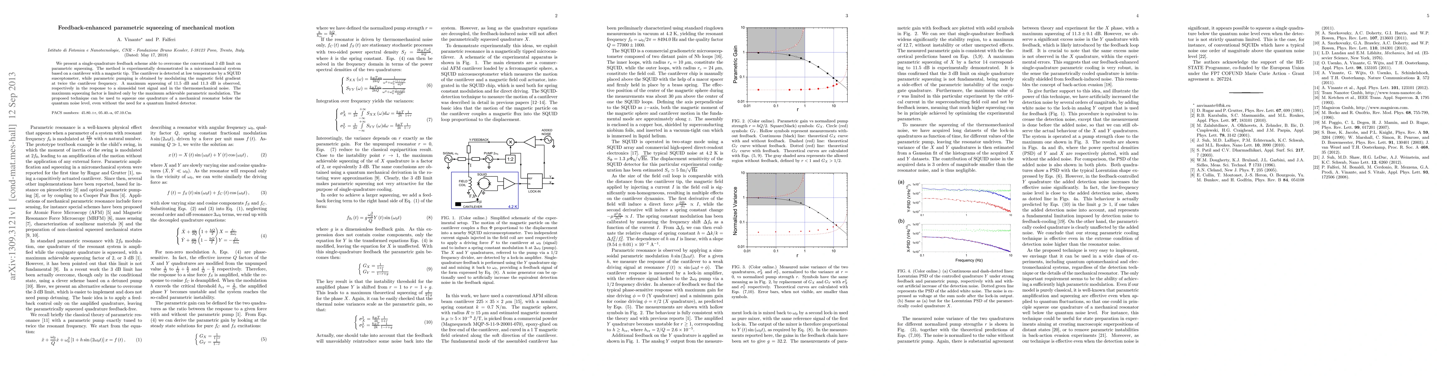 This research demonstrates a feedback scheme to achieve parametric squeezing in a micromechanical system, surpassing the conventional 3 dB limit. The method, applied to a cantilever with a magnetic tip, achieves up to 11.5 dB of squeezing, showing potential for reducing mechanical motion noise below quantum noise levels.