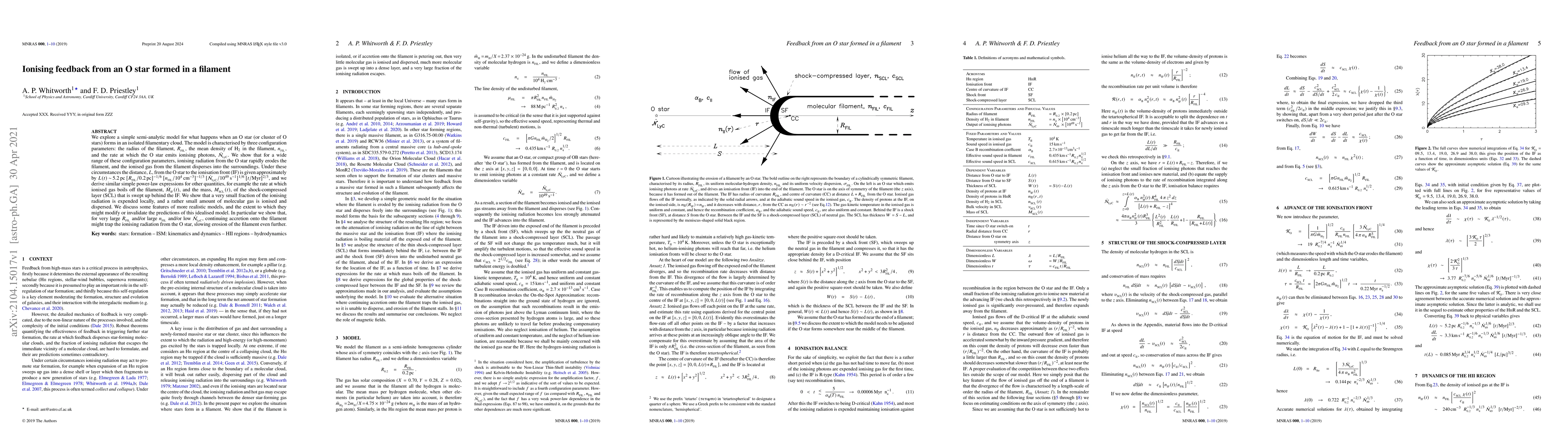 An O star's ionizing radiation rapidly erodes an isolated filamentary cloud, dispersing ionized gas into the surroundings. The rate of erosion depends on three configuration parameters: radius of the filament, mean density of H2, and ionizing photon emission rate.