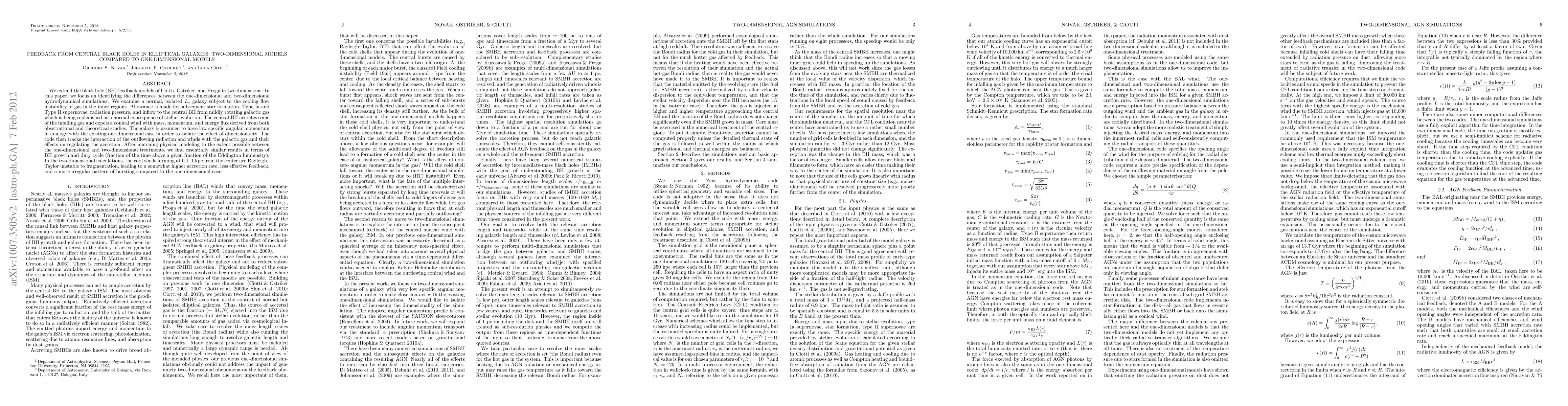 We extend the black hole (BH) feedback models of Ciotti, Ostriker, and Proga to two dimensions. In this paper, we focus on identifying the differences between the one-dimensional and two-dimensional hydrodynamical simulations. We examine a normal, isolated $L_*$ galaxy subject to the cooling flow instability of gas in the inner regions. Allowance is made for subsequent star formation, Type Ia and Type II supernovae, radiation pressure, and inflow to the central BH from mildly rotating galactic gas which is being replenished as a normal consequence of stellar evolution. The central BH accretes some of the infalling gas and expels a conical wind with mass, momentum, and energy flux derived from both observational and theoretical studies. The galaxy is assumed to have low specific angular momentum in analogy with the existing one-dimensional case in order to isolate the effect of dimensionality. The code then tracks the interaction of the outflowing radiation and winds with the galactic gas and their effects on regulating the accretion. After matching physical modeling to the extent possible between the one-dimensional and two-dimensional treatments, we find essentially similar results in terms of BH growth and duty cycle (fraction of the time above a given fraction of the Eddington luminosity). In the two-dimensional calculations, the cool shells forming at 0.1--1 kpc from the center are Rayleigh--Taylor unstable to fragmentation, leading to a somewhat higher accretion rate, less effective feedback, and a more irregular pattern of bursting compared to the one-dimensional case.