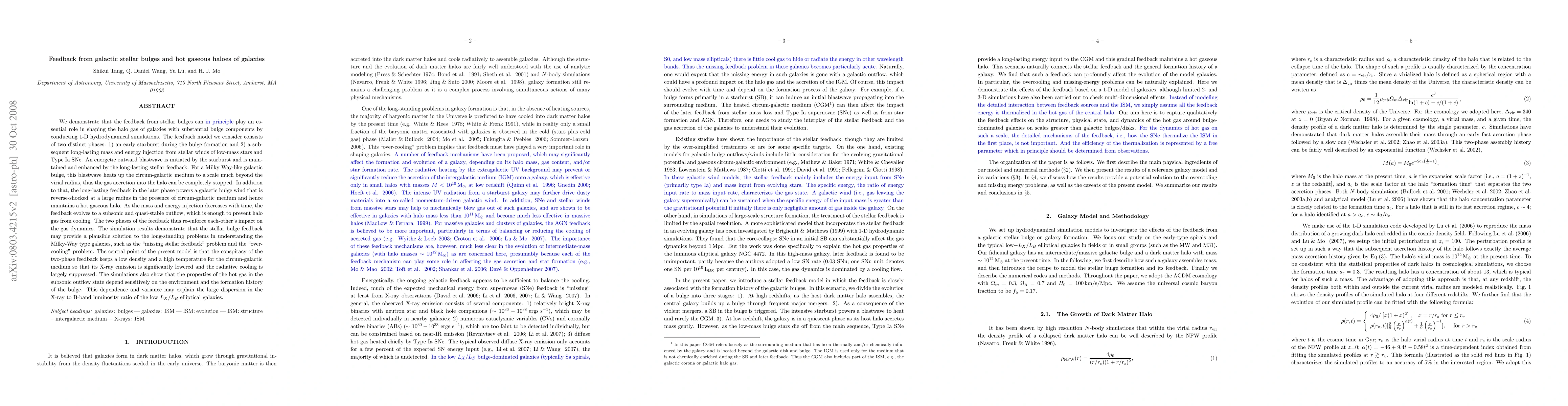 We demonstrate that the feedback from stellar bulges can play an essential role in shaping the halo gas of galaxies with substantial bulge components by conducting 1-D hydrodynamical simulations. The feedback model we consider consists of two distinct phases: 1) an early starburst during the bulge formation and 2) a subsequent long-lasting mass and energy injection from stellar winds of low-mass stars and Type Ia SNe. An energetic outward blastwave is initiated by the starburst and is maintained and enhanced by the long-lasting stellar feedback. For a MW-like galactic bulge, this blastwave sweeps up the halo gas in the proto-galaxy and heats up the surrounding medium to a scale much beyond the virial radius of the halo, thus the accretion of the halo hot gas can be completely stopped. In addition, the long-lasting feedback in the later phase powers a galactic bulge wind that is reverse-shocked at a large radius in the presence of surrounding intergalactic medium and hence maintains a hot gaseous halo. As the mass and energy injection decreases with time, the feedback evolves to a subsonic and quasi-stable outflow, which is enough to prevent halo gas from cooling. The two phases of the feedback thus re-enforce each-other's impact on the gas dynamics. The simulation results demonstrate that the stellar bulge feedback may provide a plausible solution to the long-standing problems in understanding the MW type galaxies, such as the "missing stellar feedback" problem and the "over-cooling" problem. The simulations also show that the properties of the hot gas in the subsonic outflow state depend sensitively on the environment and the formation history of the bulge. This dependence and variance may explain the large dispersion in the X-ray to B-band luminosity ratio of the low $L_X/L_B$ Es.