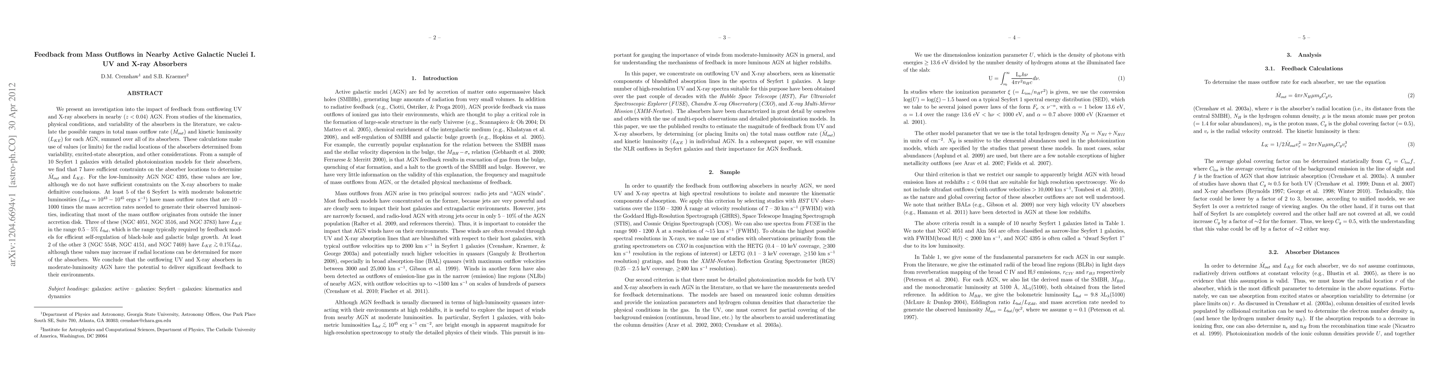 This paper investigates the feedback impact of UV and X-ray absorbers from nearby active galactic nuclei (AGN), finding that several moderate-luminosity AGN exhibit mass outflow rates significantly exceeding their accretion rates, suggesting substantial feedback potentially regulating black-hole and galactic growth.
