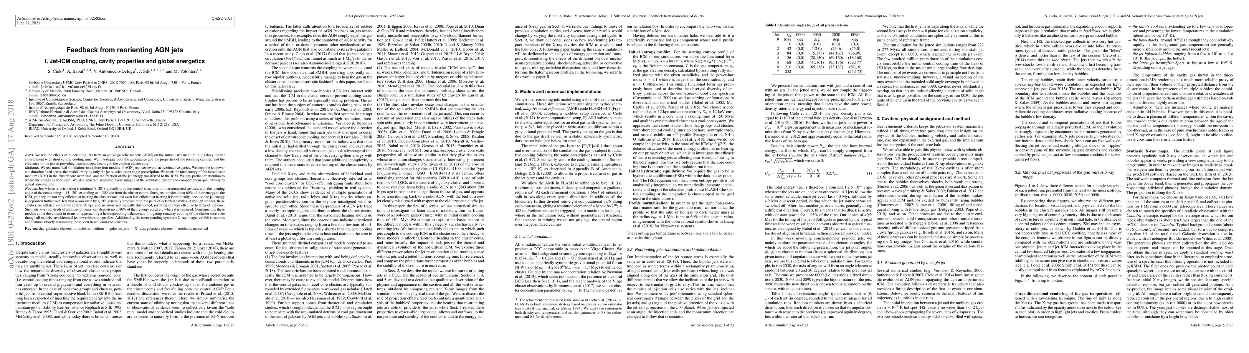 Research finds that reorienting active galactic nucleus jets can effectively heat galaxy cluster cores, with minimal reorientation producing conical cavities that transfer 60% of their energy to the ICM, while more significant reorientation results in multiple detached cavities that deposit up to 80% of their energy near the core.
