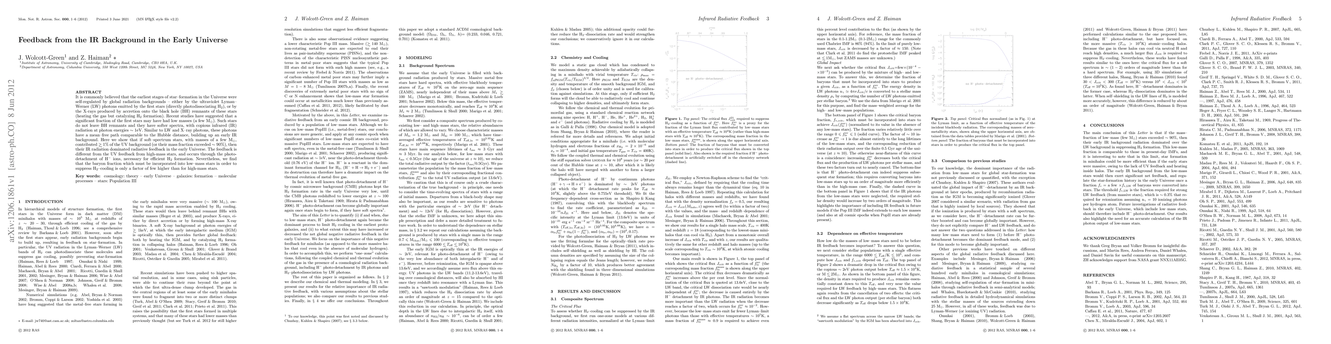 This paper investigates the impact of infrared (IR) radiation from low-mass stars in the early Universe, showing that their IR background could dominate radiative feedback if they constituted more than 1% of the UV background. Unlike UV feedback from high-mass stars, IR feedback operates through the photo-detachment of H^- ions, influencing H_2 formation.
