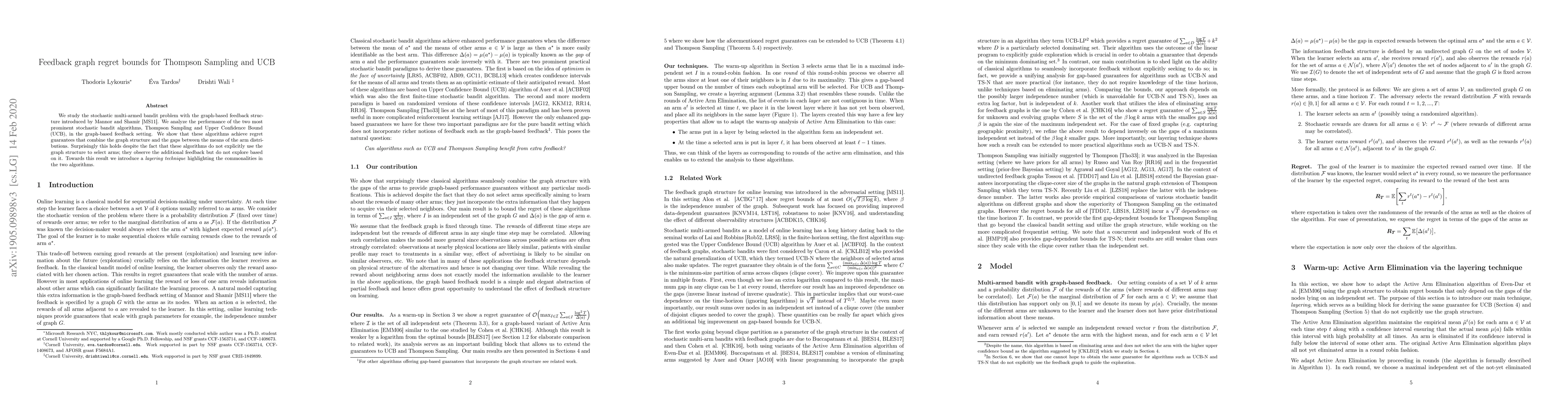 This paper analyzes Thompson Sampling and UCB algorithms in a stochastic multi-armed bandit problem with a graph-based feedback structure. It demonstrates that these algorithms achieve regret bounds that incorporate both the graph structure and mean gaps, despite not explicitly using the graph for arm selection.