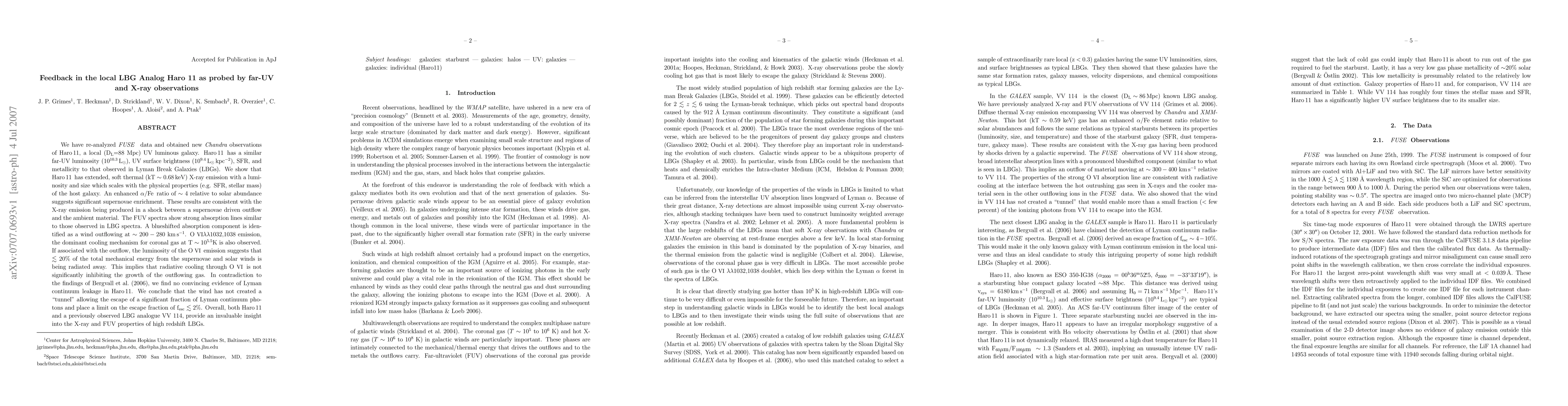 This study re-analyzes FUSE and Chandra data for Haro 11, revealing extended soft thermal X-ray emission linked to the galaxy's star formation and supernovae enrichment. The findings suggest that radiative cooling from OVI emission does not significantly inhibit the outflowing gas, and there is no evidence of Lyman continuum leakage, limiting the escape fraction to less than 2%.
