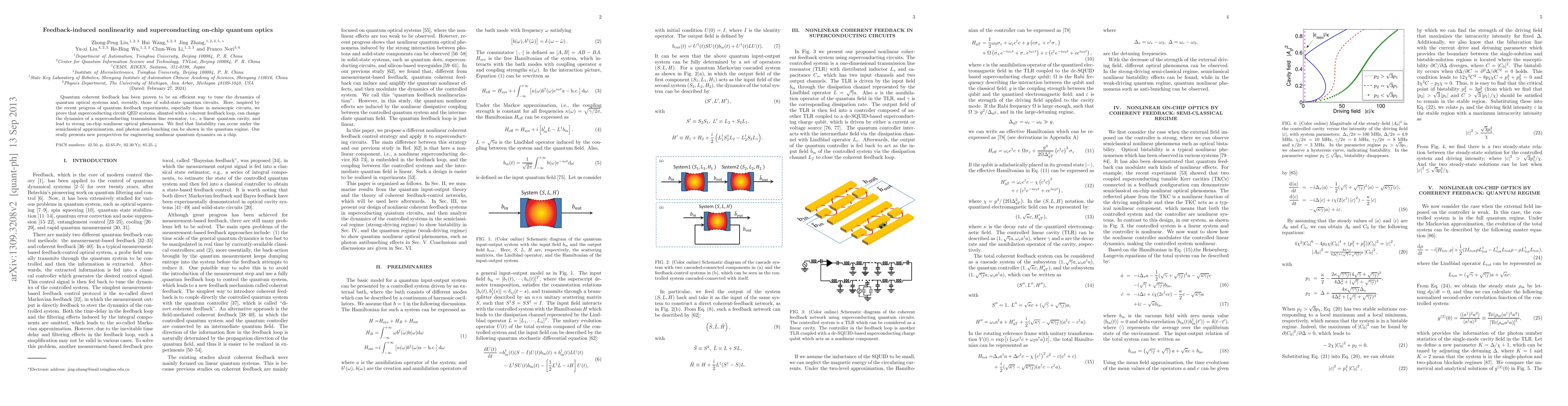 This paper demonstrates that quantum coherent feedback can significantly alter the dynamics of superconducting circuit quantum electrodynamics (QED) systems, leading to strong on-chip nonlinear optical phenomena such as bistability and photon anti-bunching. The findings suggest new avenues for engineering nonlinear quantum dynamics in solid-state quantum circuits.
