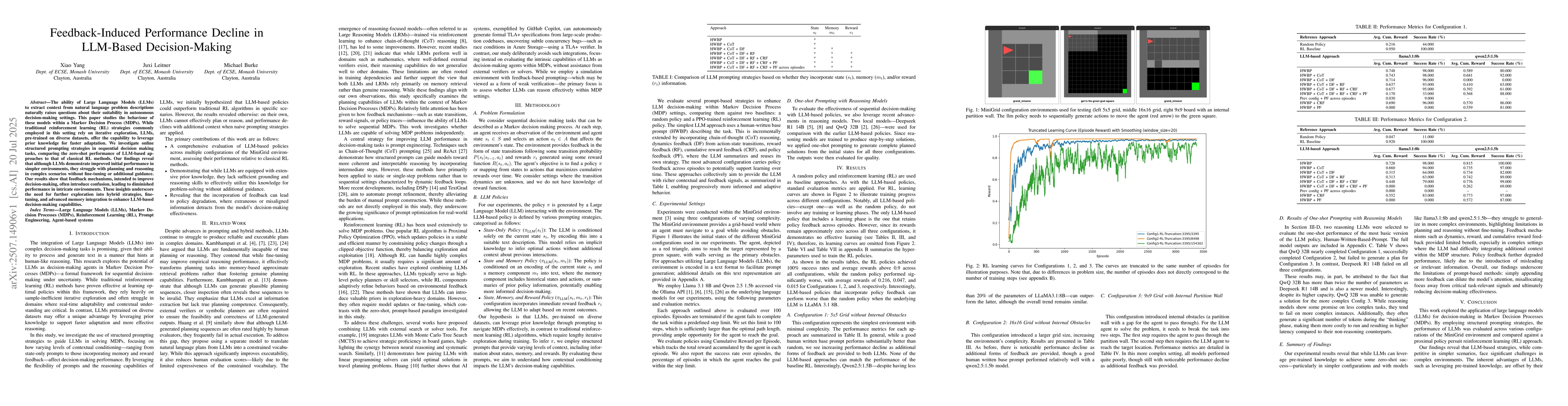 The ability of Large Language Models (LLMs) to extract context from natural language problem descriptions naturally raises questions about their suitability in autonomous decision-making settings. This paper studies the behaviour of these models within a Markov Decision Process (MDPs). While traditional reinforcement learning (RL) strategies commonly employed in this setting rely on iterative exploration, LLMs, pre-trained on diverse datasets, offer the capability to leverage prior knowledge for faster adaptation. We investigate online structured prompting strategies in sequential decision making tasks, comparing the zero-shot performance of LLM-based approaches to that of classical RL methods. Our findings reveal that although LLMs demonstrate improved initial performance in simpler environments, they struggle with planning and reasoning in complex scenarios without fine-tuning or additional guidance. Our results show that feedback mechanisms, intended to improve decision-making, often introduce confusion, leading to diminished performance in intricate environments. These insights underscore the need for further exploration into hybrid strategies, fine-tuning, and advanced memory integration to enhance LLM-based decision-making capabilities.