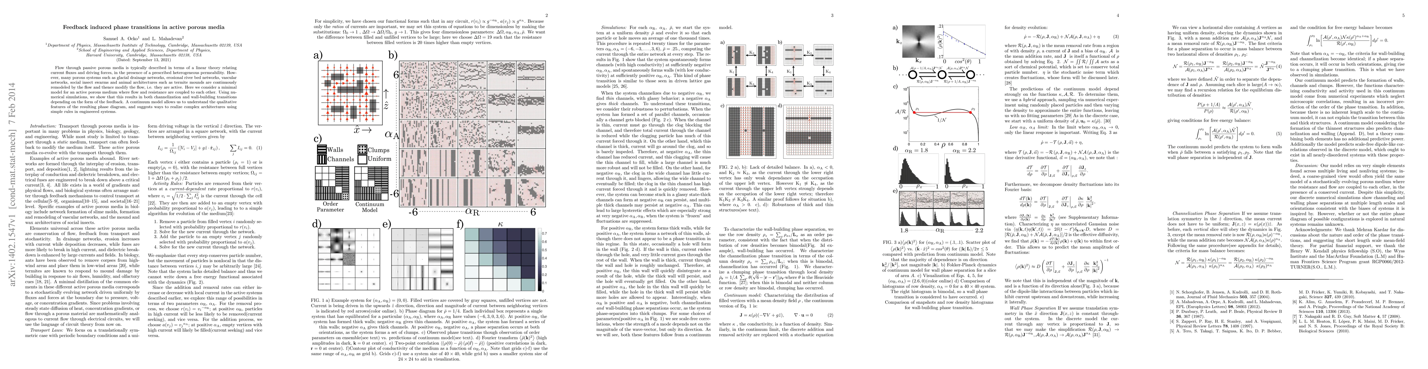 This paper explores the dynamics of active porous media where flow induces feedback that remodels the medium, leading to phase transitions such as channelization and wall-building. Numerical simulations and a continuum model reveal the qualitative features of these transitions and suggest applications for engineered systems.